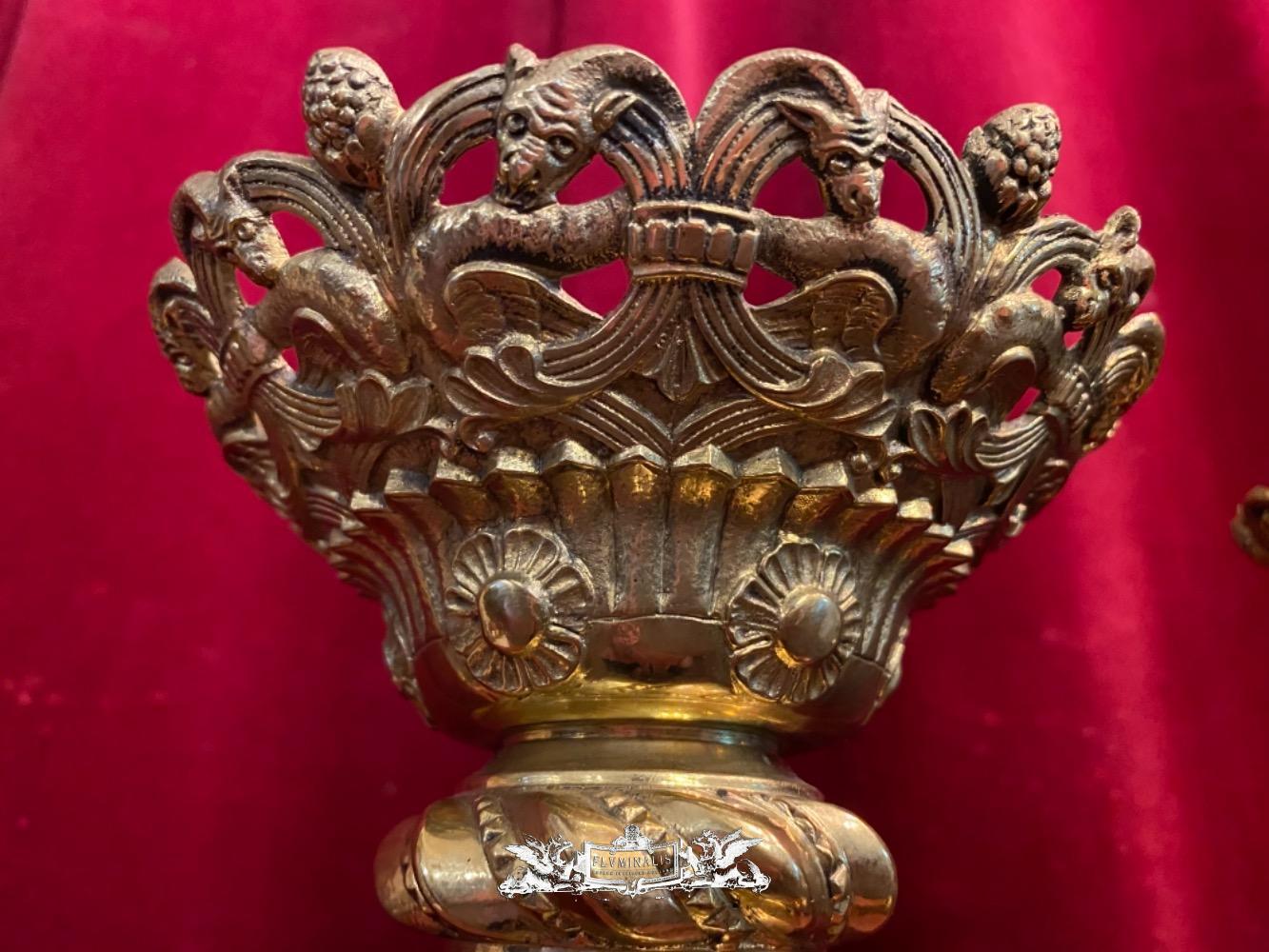 Candle Holders style Romanesque - Style en Bronze Gilt, France 19 th century ( Anno 1890 )