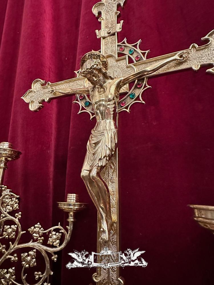 Exceptional Altar - Set style Gothic - Style en Bronze / Polished and Varnished / Stones, Belgium 19 th century ( Anno 1865 )