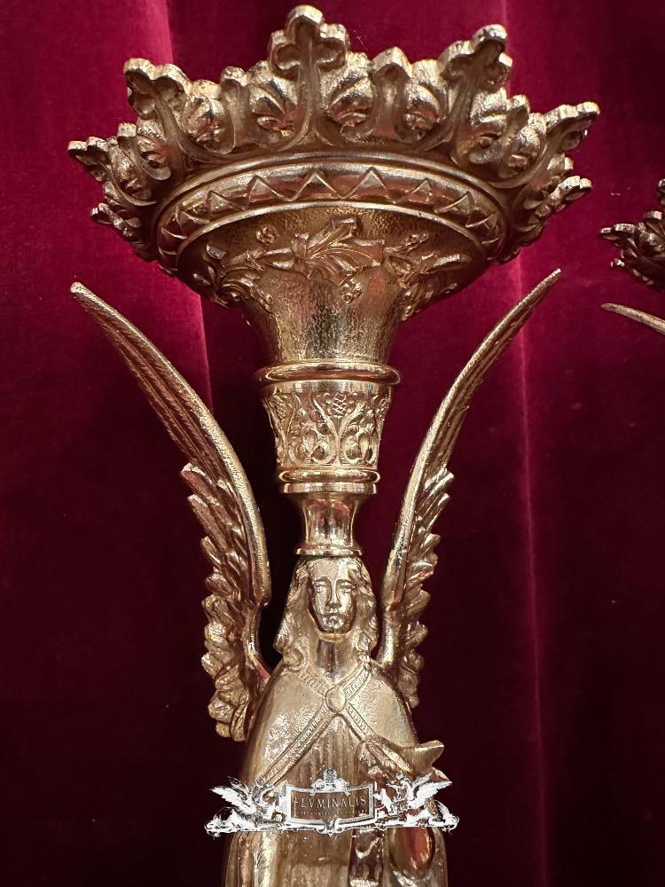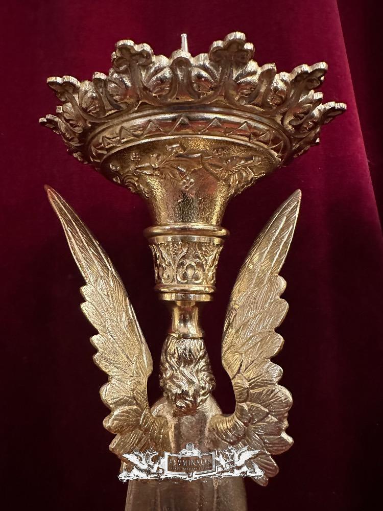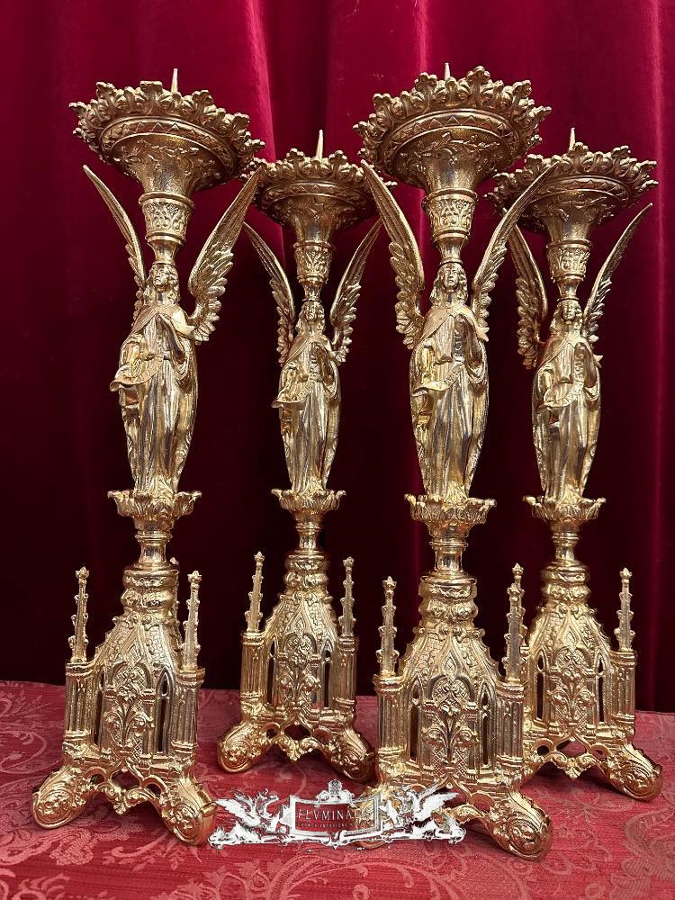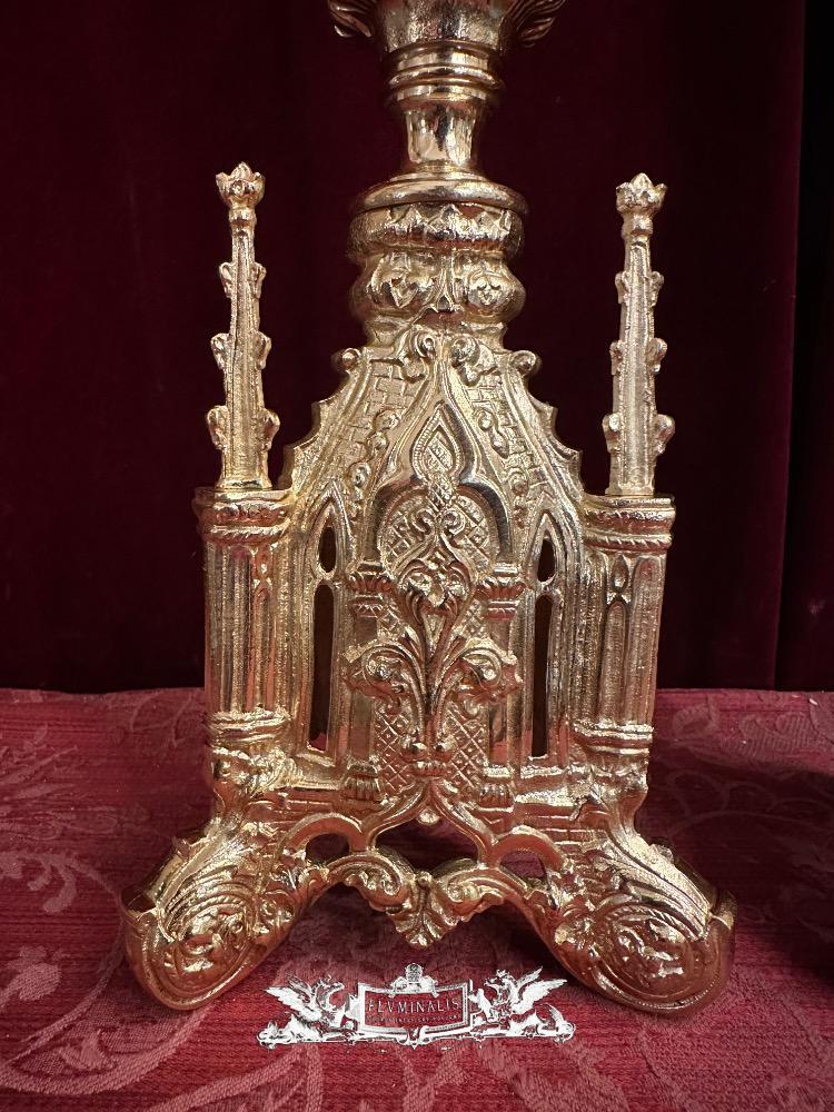 Matching Candle Sticks Height Without Pin. style Gothic - Style en Bronze / Polished and Varnished, France 19 th century ( Anno 1865 )