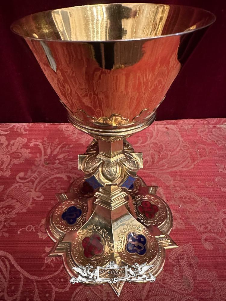 Chalice With Case style Gothic - Style en Brass / Full - Silver Cuppa / Enamel Aplications, Bruges - Belgium 19 th century