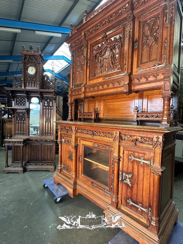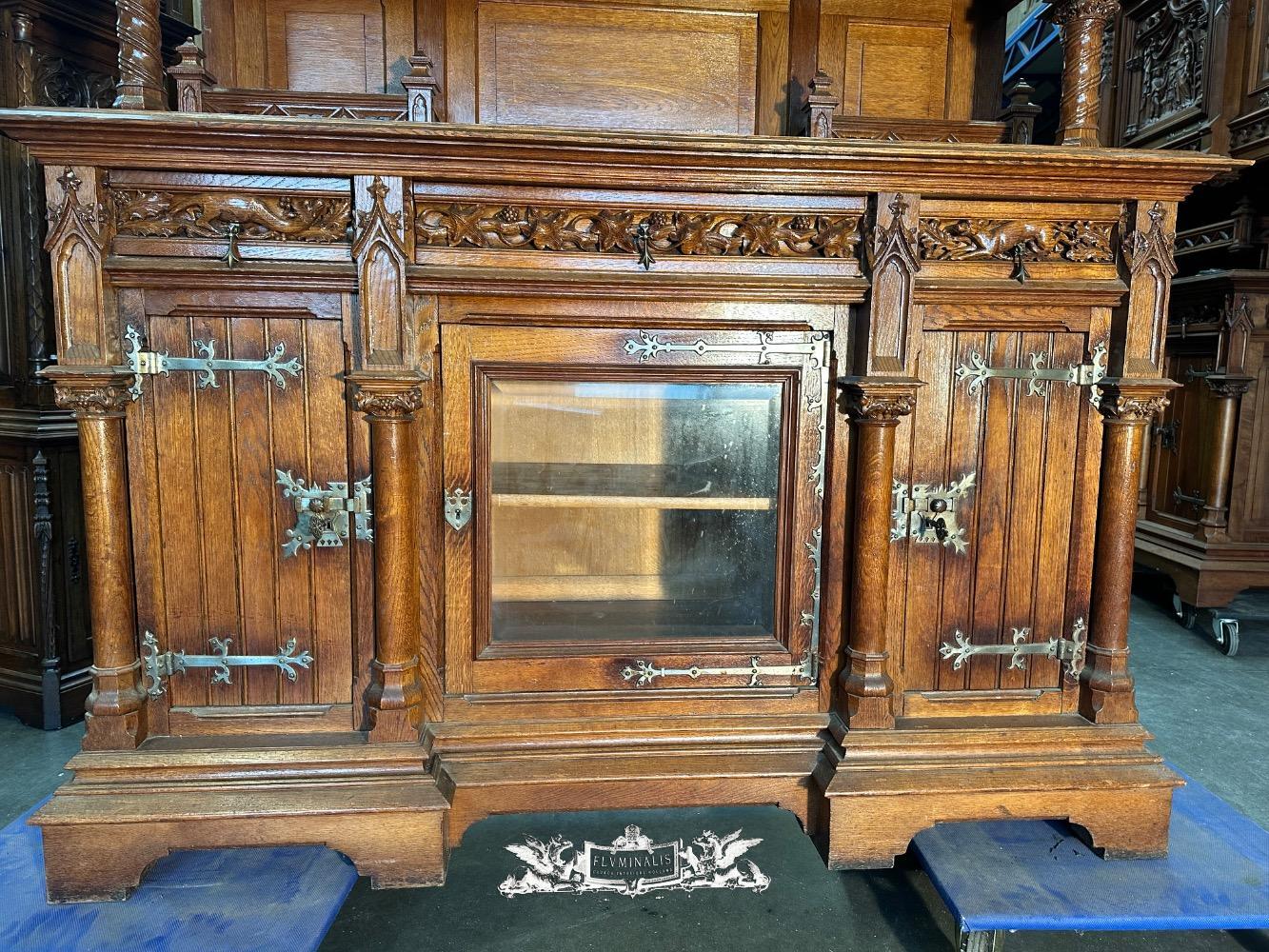 Cabinet style Gothic - Style en Oak wood / Glass, France 19 th century