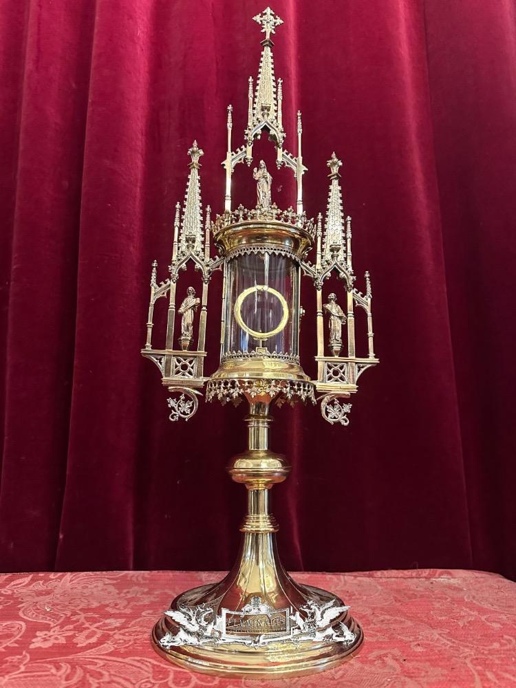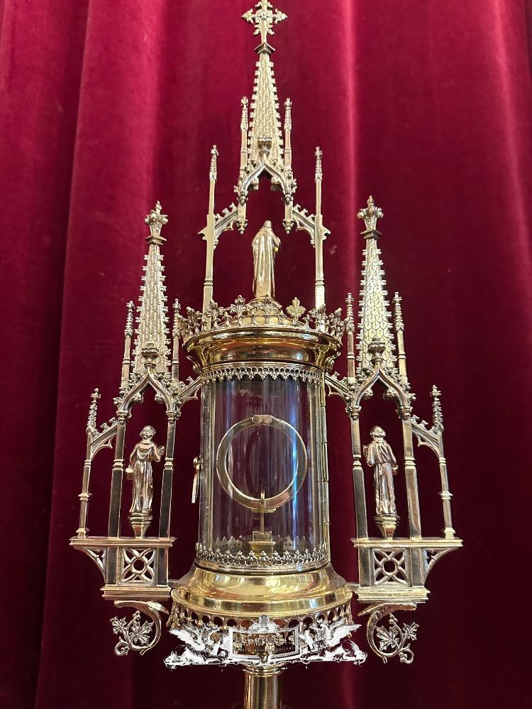 Cillinder Monstrance style Gothic - Style en Brass / Bronze / Gilt / Glass, Belgium 19 th century ( Anno 1875 )