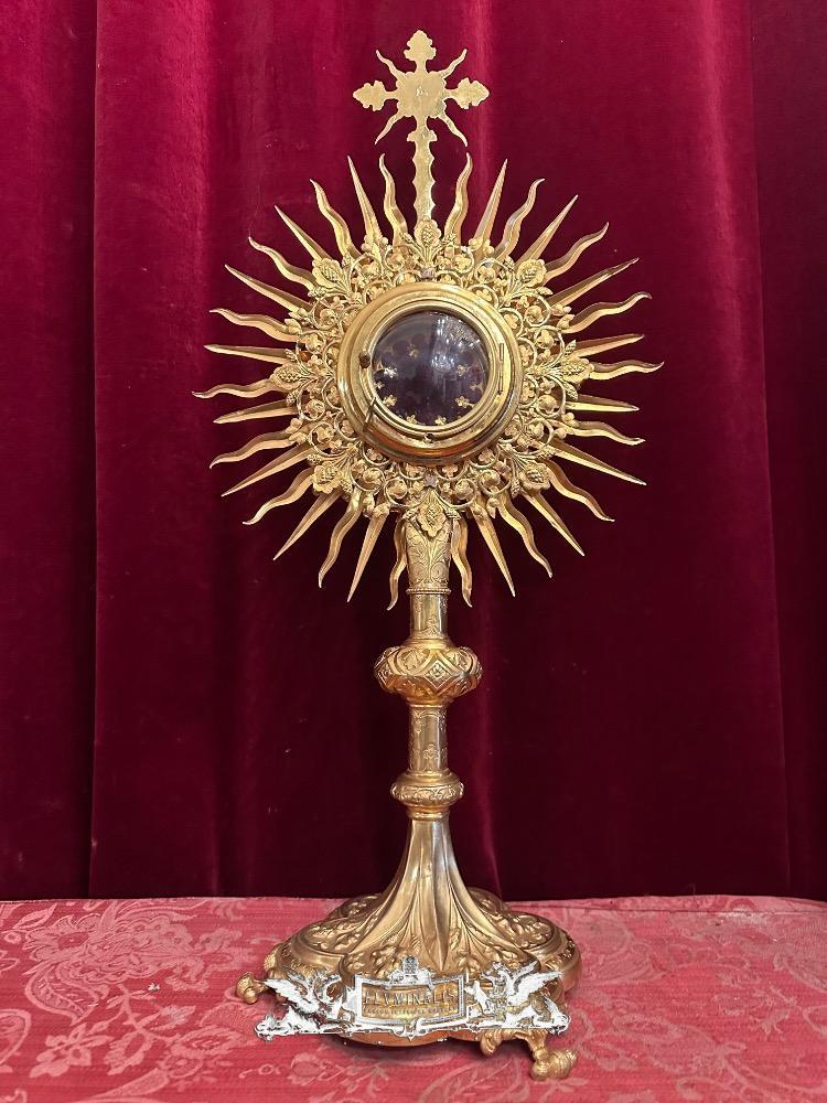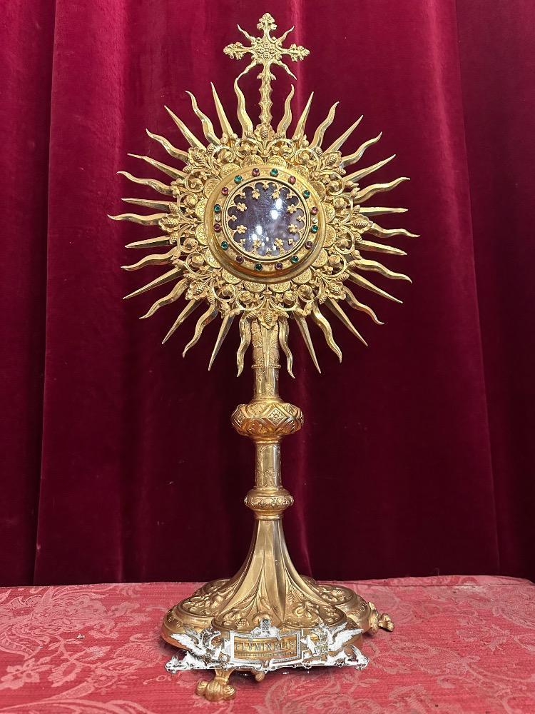 Monstrance style Gothic - Style en Brass / Gilt / Glass / Stones, Belgium 19 th century ( Anno 1885 )