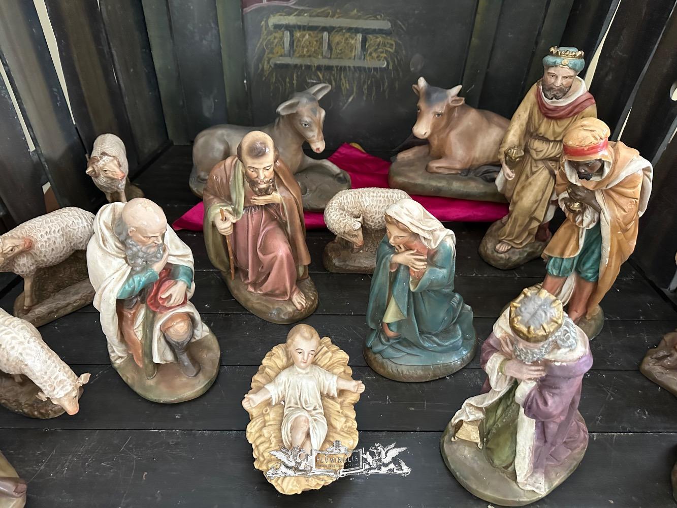 Nativity Set style Gothic - Style en Plaster polychrome, Belgium