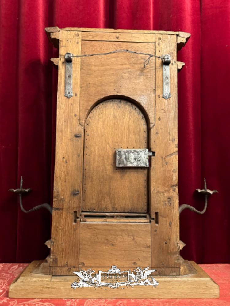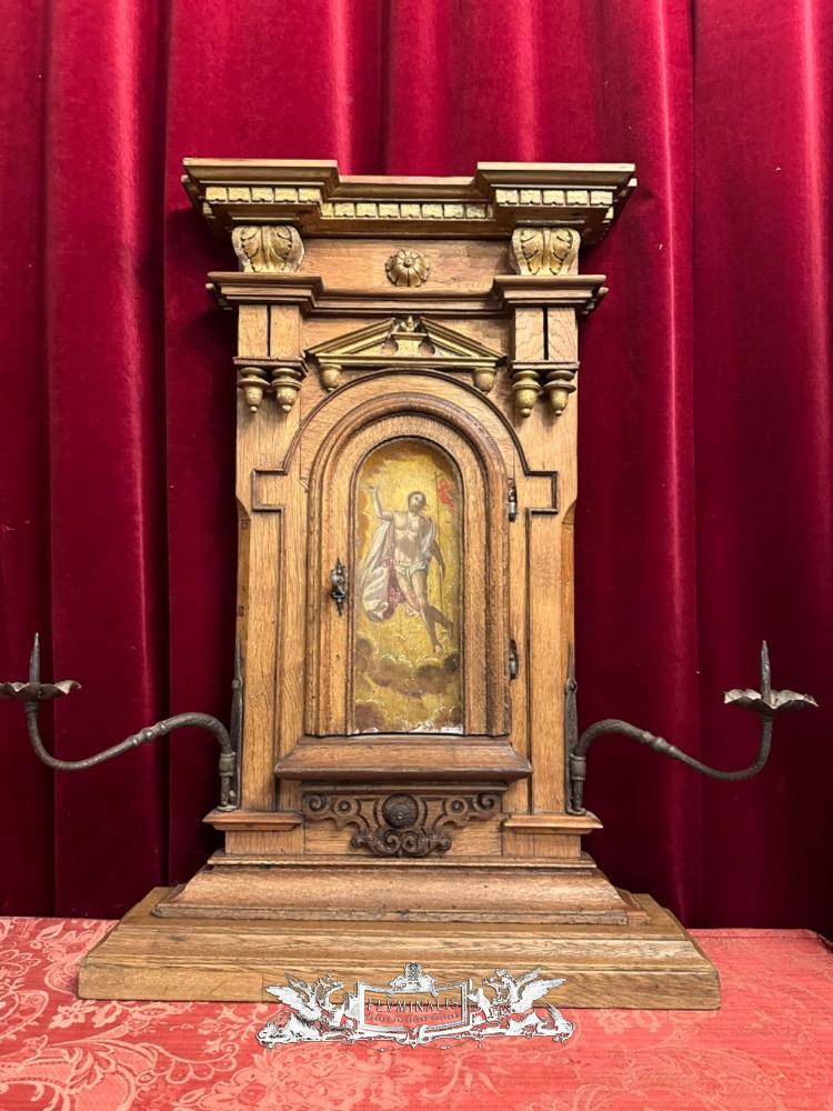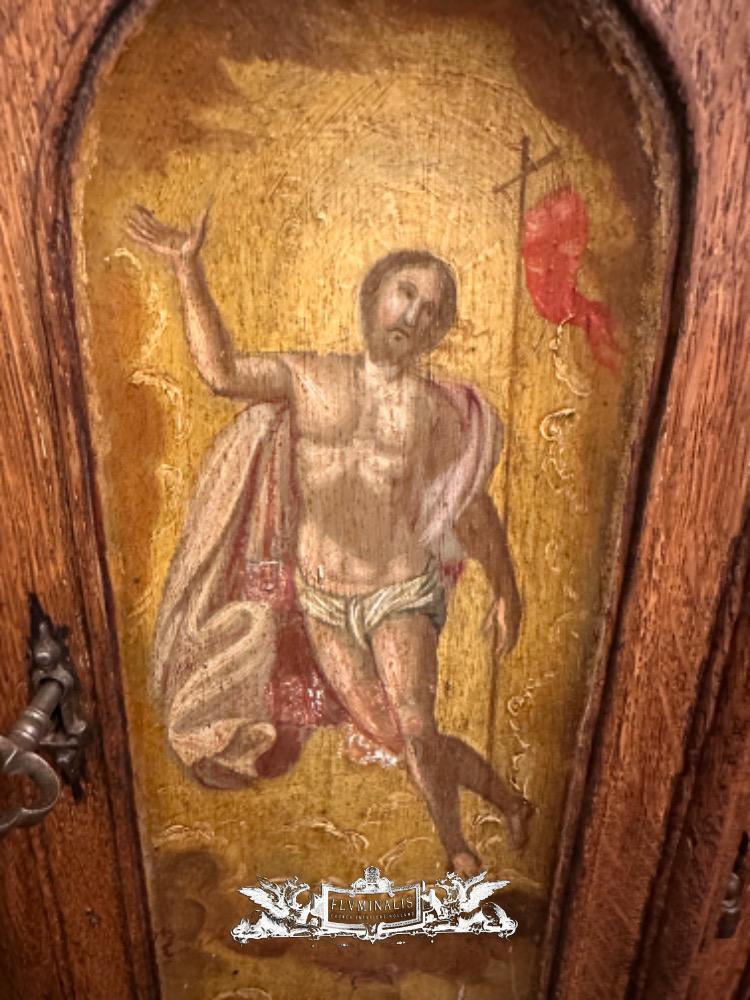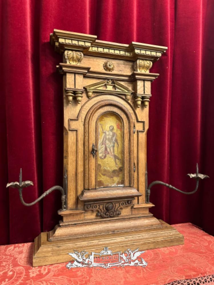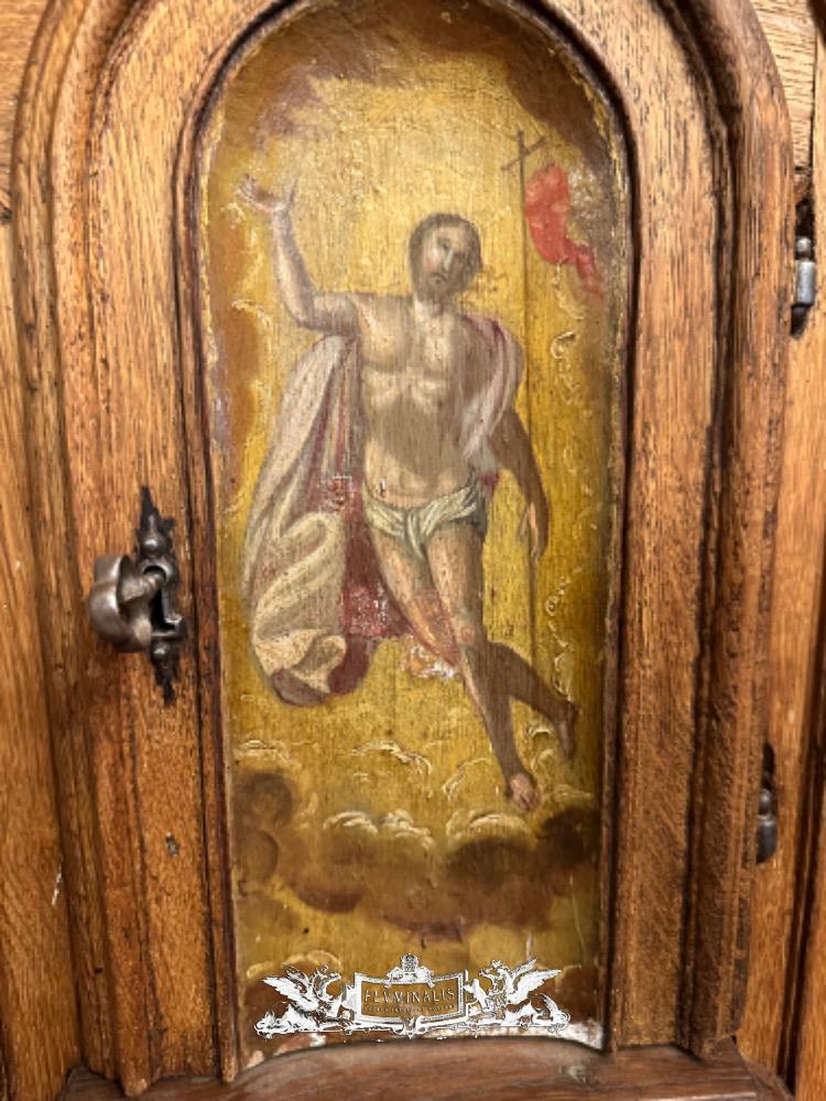 Tabernacle Front With Imagination Of The Risen Christ style Romanesque - Style en Oak wood / Hand - Forget Iron, Flemish - Belgium 19 th century ( Anno 1850 )