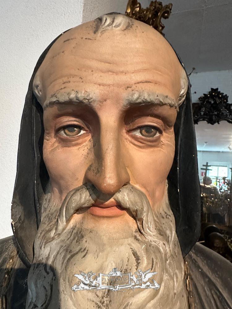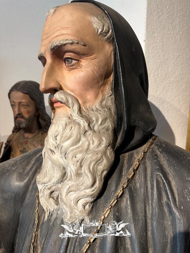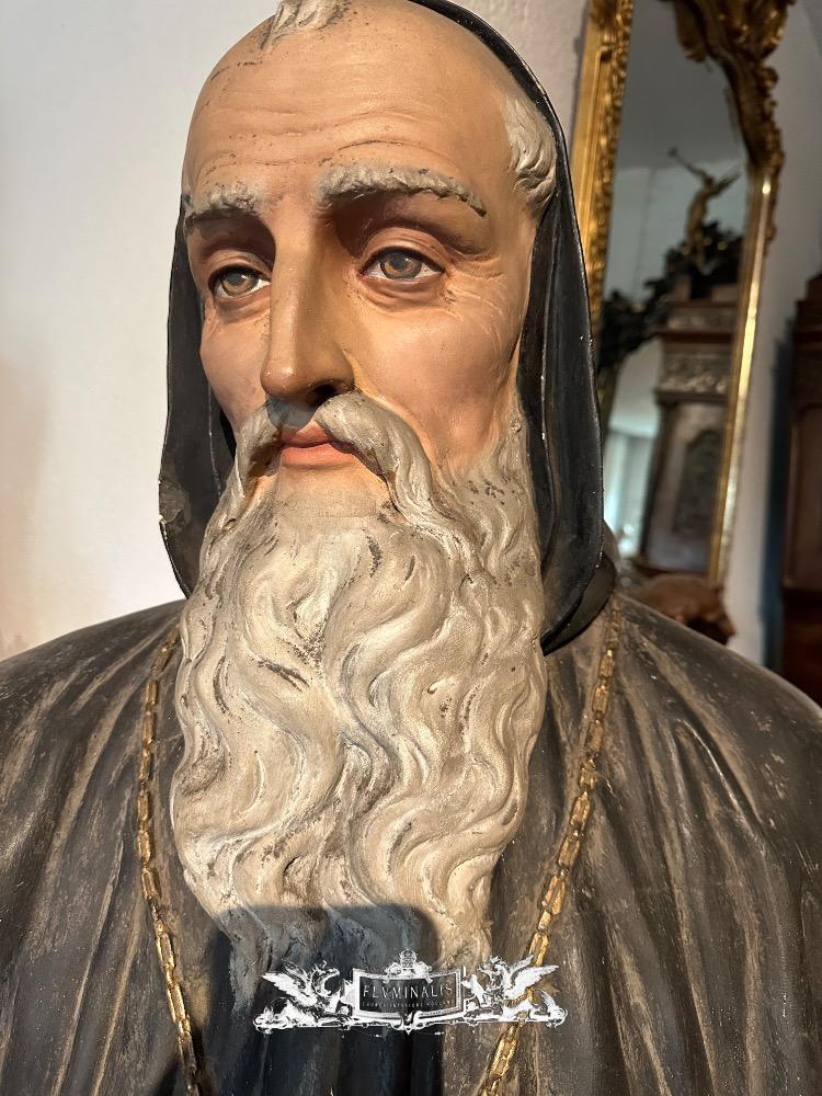 More Than Life Size St. Benedict Statue Height : 215 Cm ! en Plaster polychrome, France 19 th century ( Anno 1870 )