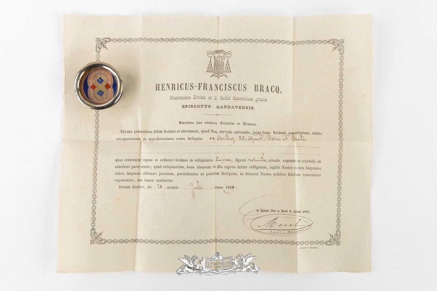 Multi Reliquary Ex Ossibus Relics : St. Paul Apostle. St. Peter Apostle With Original Document en Brass / Glass / Wax Seal, Gent - Belgium 19 th century ( Anno 1869 )