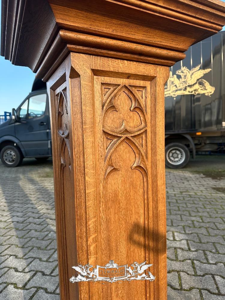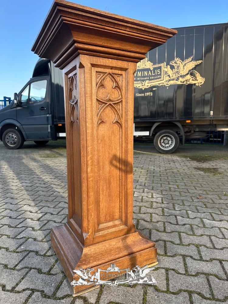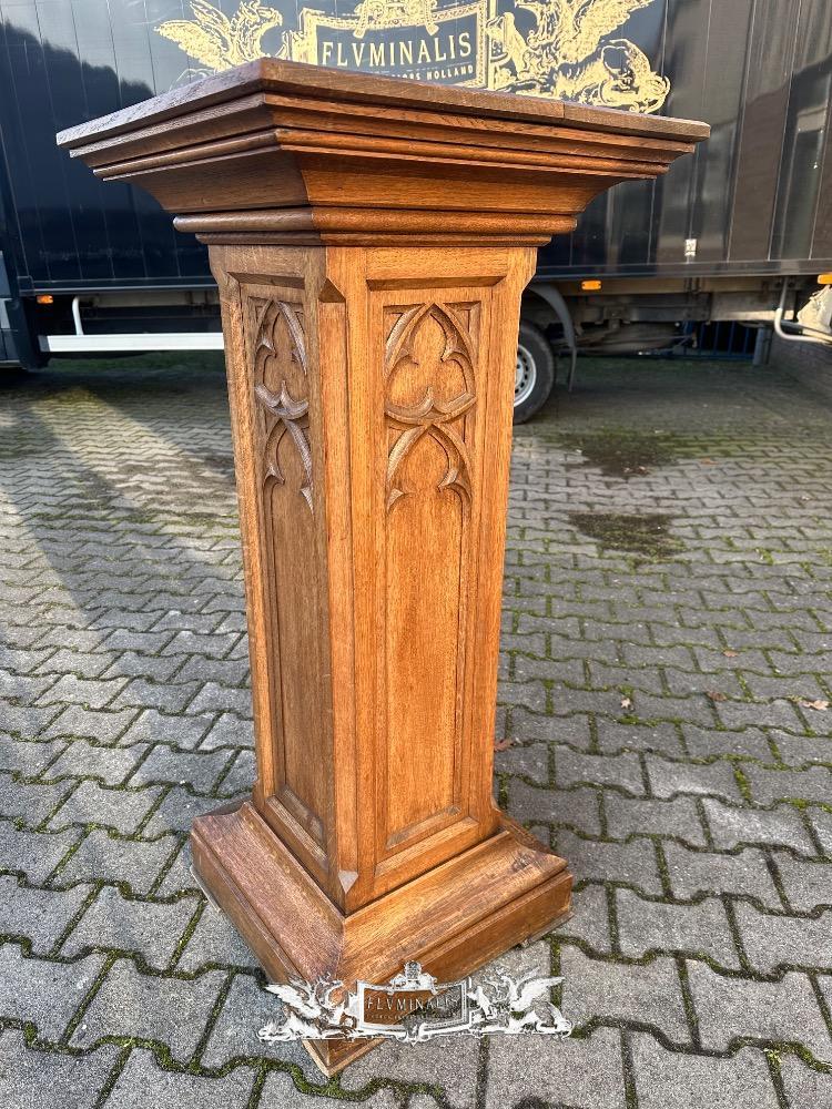 Statue Stand style Gothic - Style en Oak wood, Belgium 19 th century