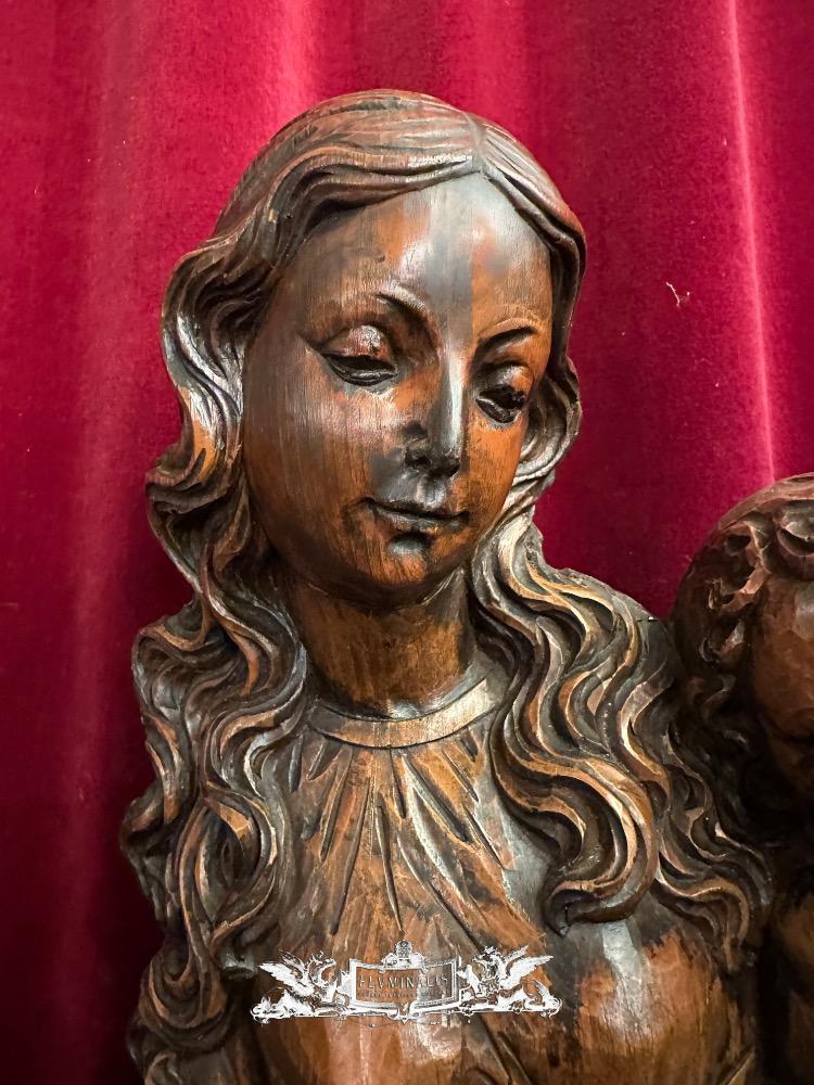 St. Mary With Child Sculpture. en Hand - Carved Wood , 20 th century