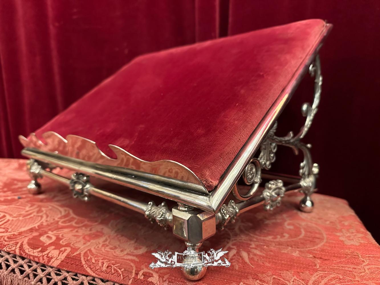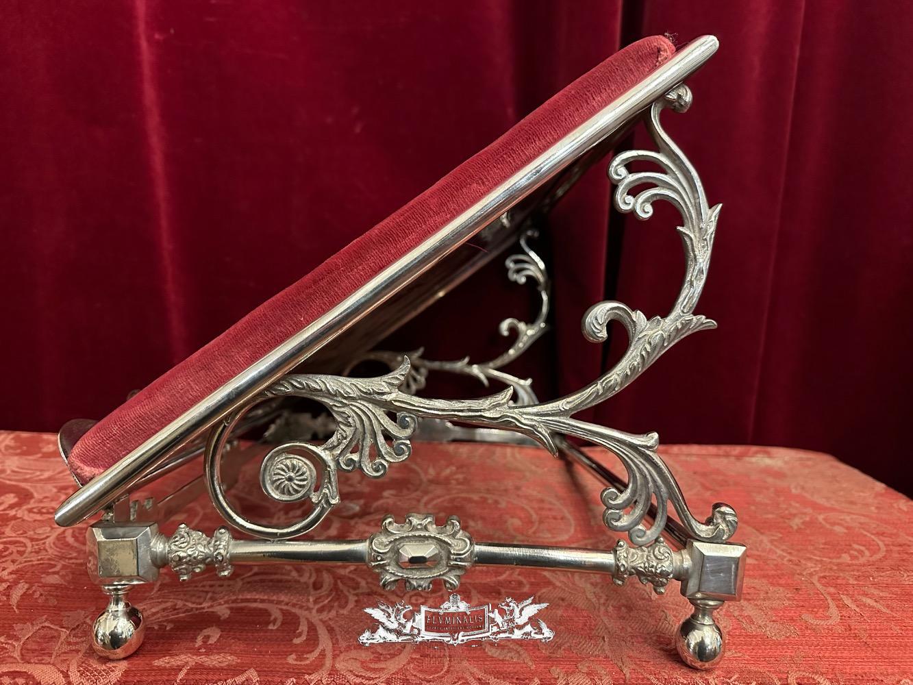 Missal Stand en Brass / Bronze Silver Plated / Fabrics Red Velvet / Wood, Belgium 19 th century