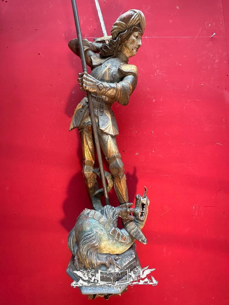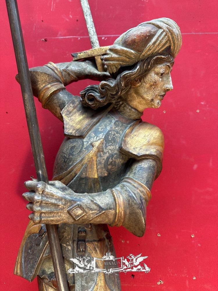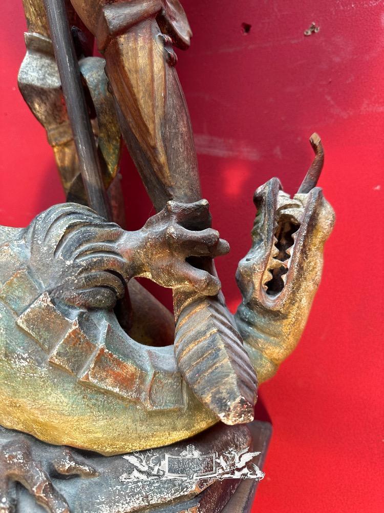 St. George Sculpture en Hand - Carved Wood / Polychrome, Southern Germany 20 th century ( Anno 1930 )