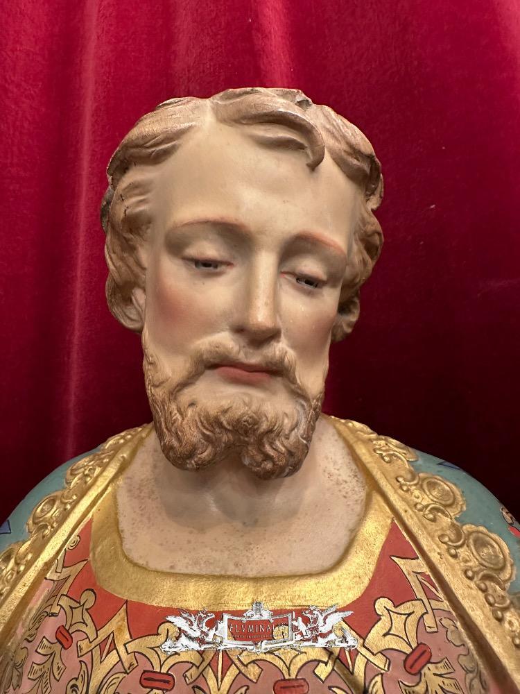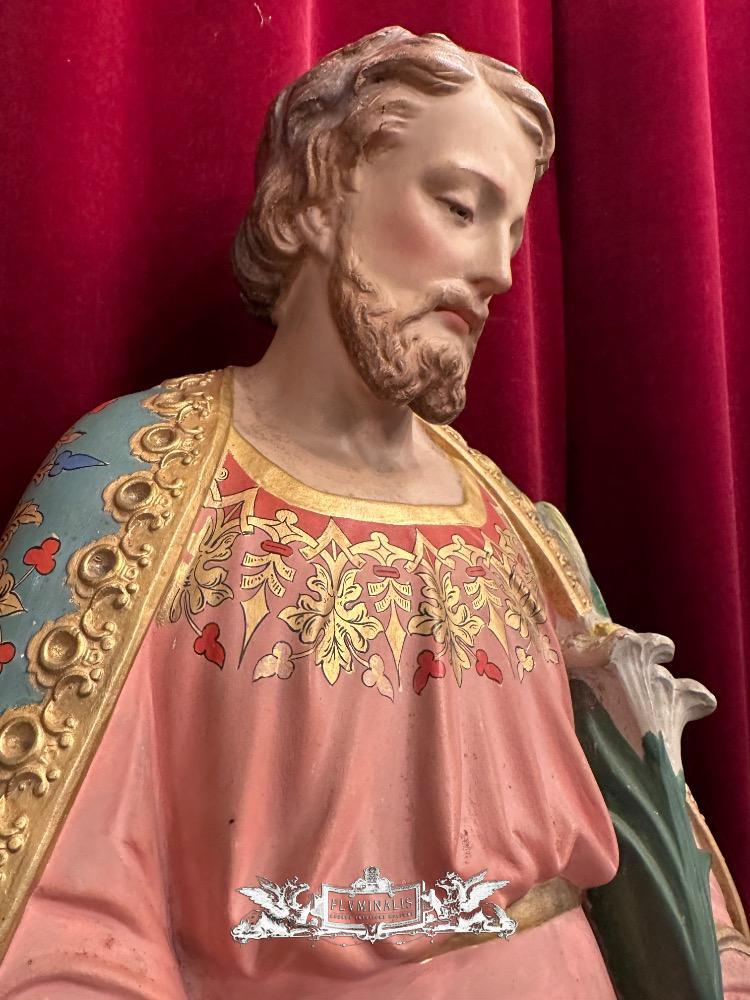 St. Joseph With Child Statue style Gothic - Style en Terra - Cotta Polychrome, France / Sainterie van Vendeuvre-sur-Barse 19 th century ( Anno 1865 )