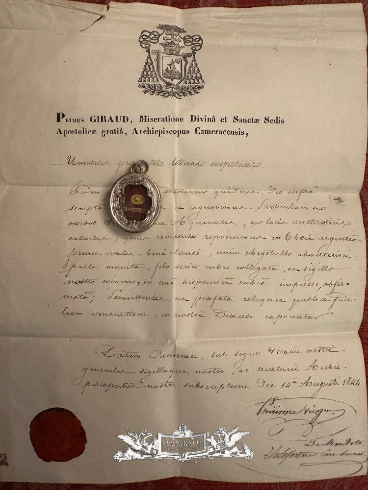 1 Reliquary - Relic Ex Ossibus St. Thomas Of Aquino With Original Document