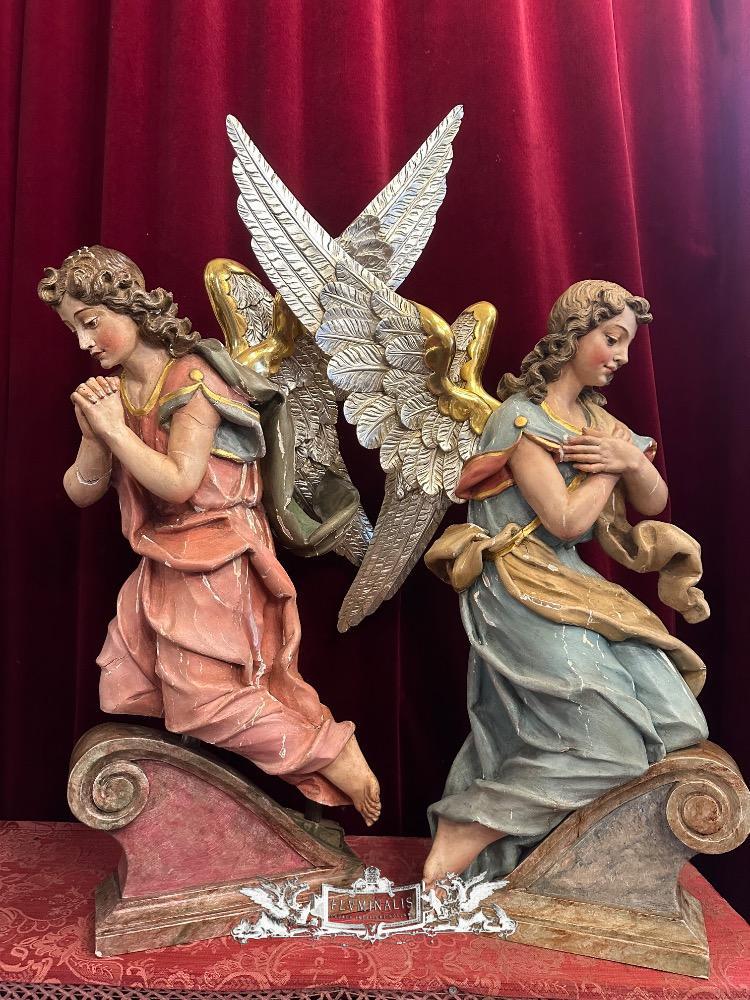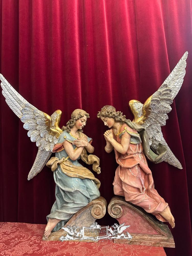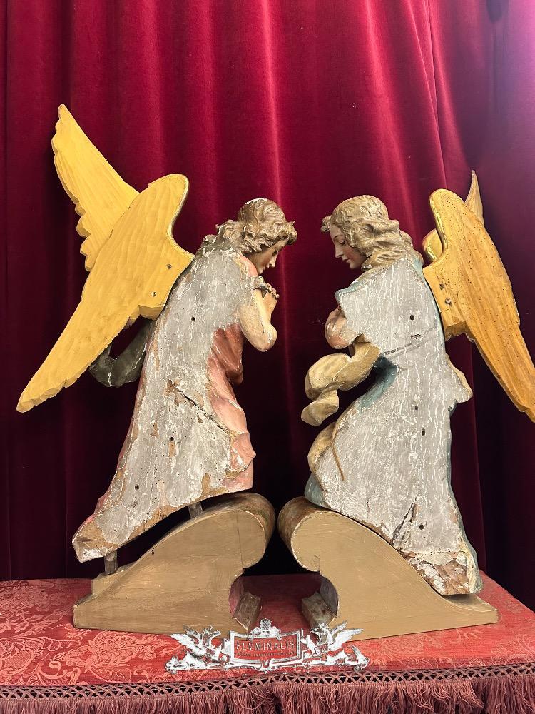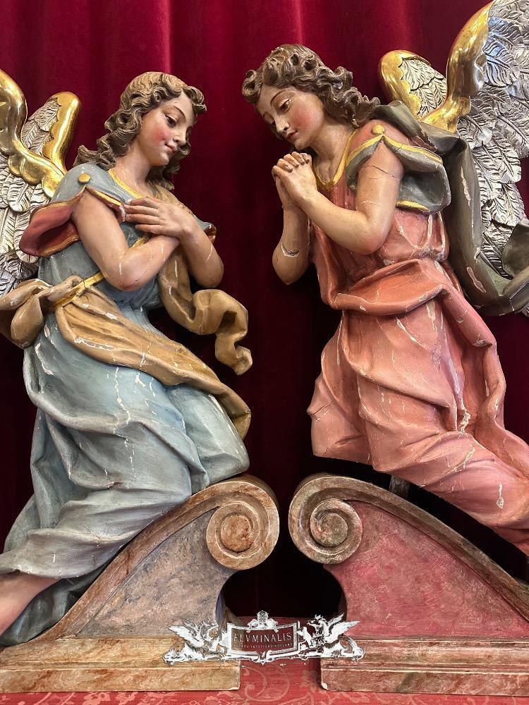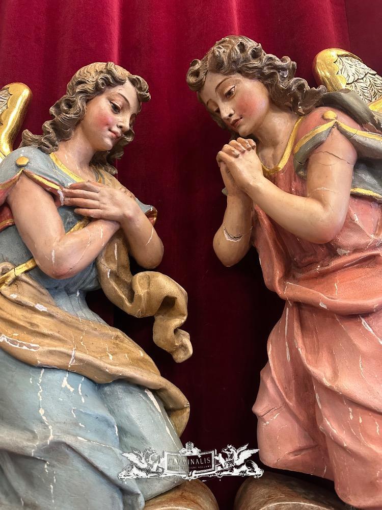 Matching Adoring Angels en Fully Hand - Carved Wood / Partly Gilt, Germany 19 th century ( Anno 1825 )