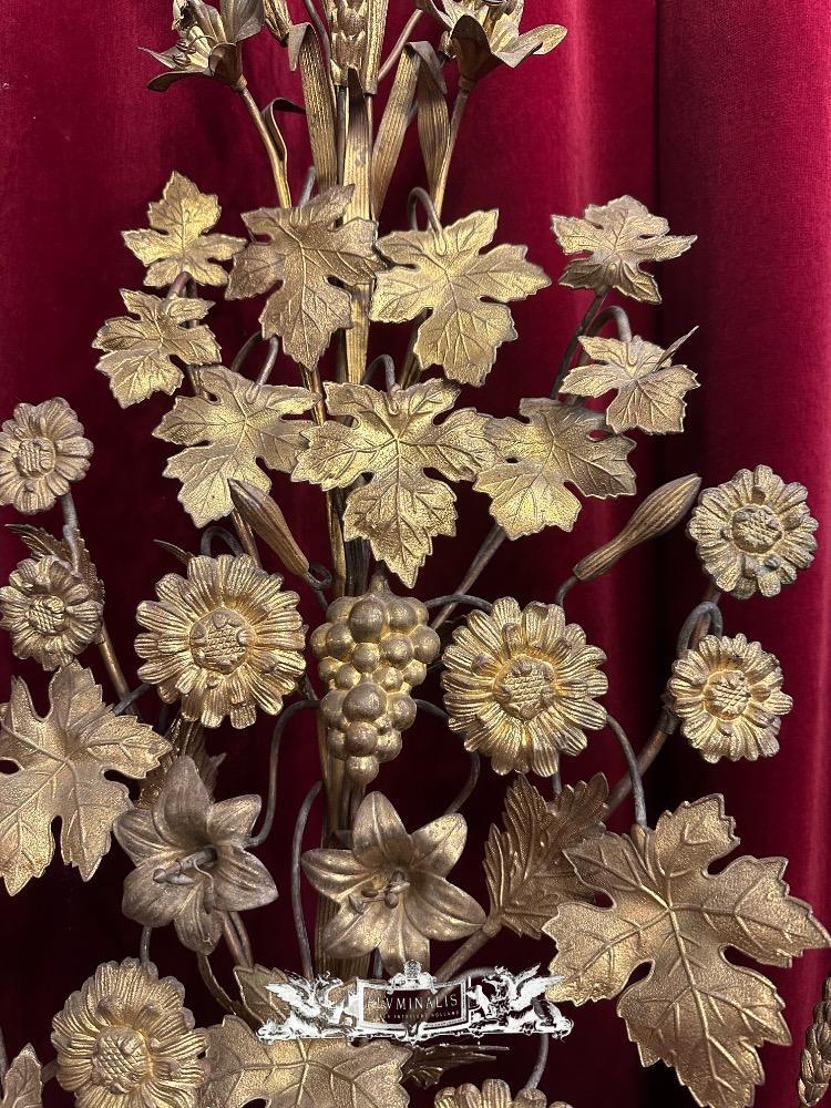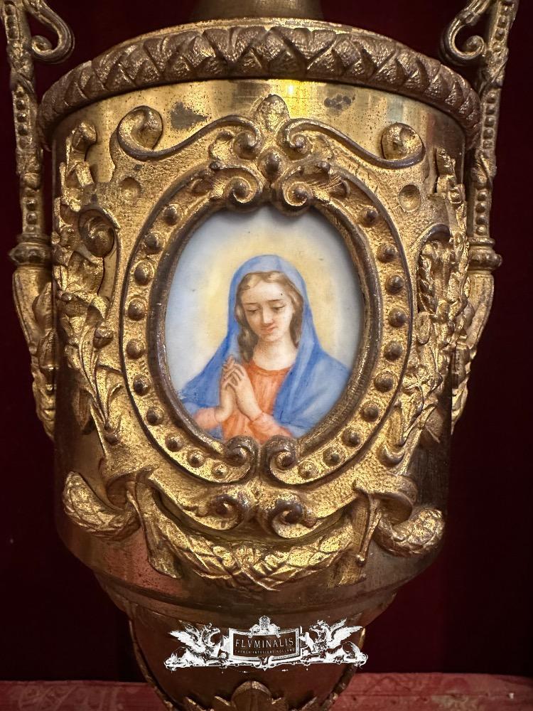 Exceptional Floral Altar Pieces 140 Cm High ! Very High Quality Enamel Representations Of St. Mary & St. Joseph style Classicistic en Brass / Bronze / Gilt / Enamel, France 19 th century ( Anno 1865 )