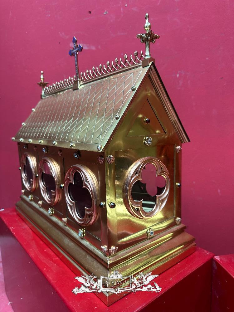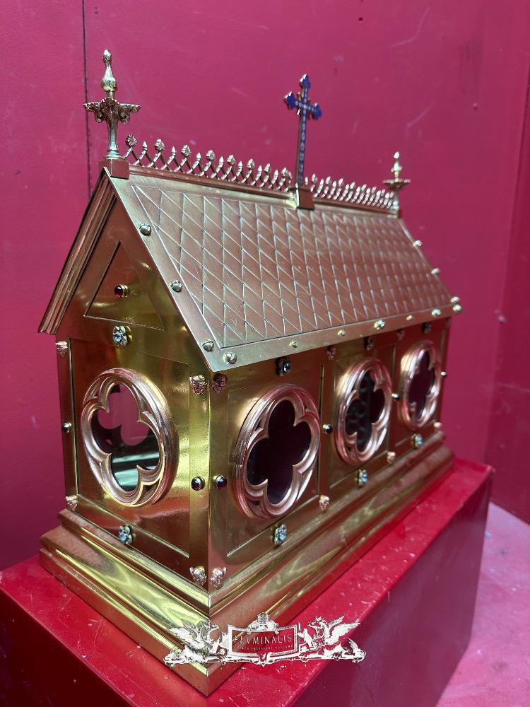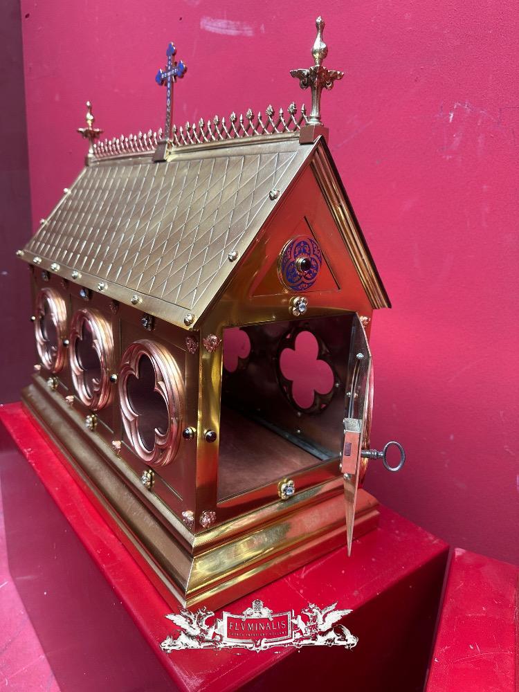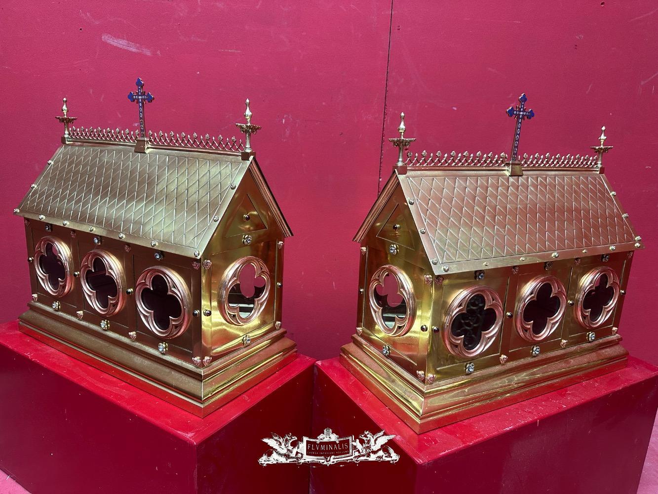 Exceptional Large Reliquaries style Gothic - Style en Brass / Bronze / Polished and Varnished / Enamel / Stones / Glass, France 19 th century ( Anno 1865 )