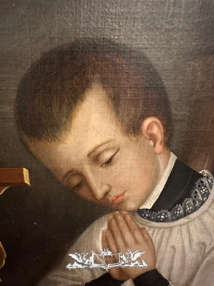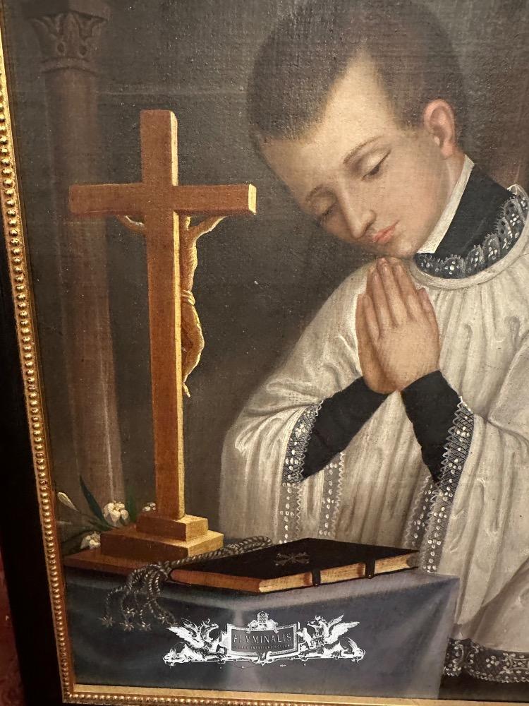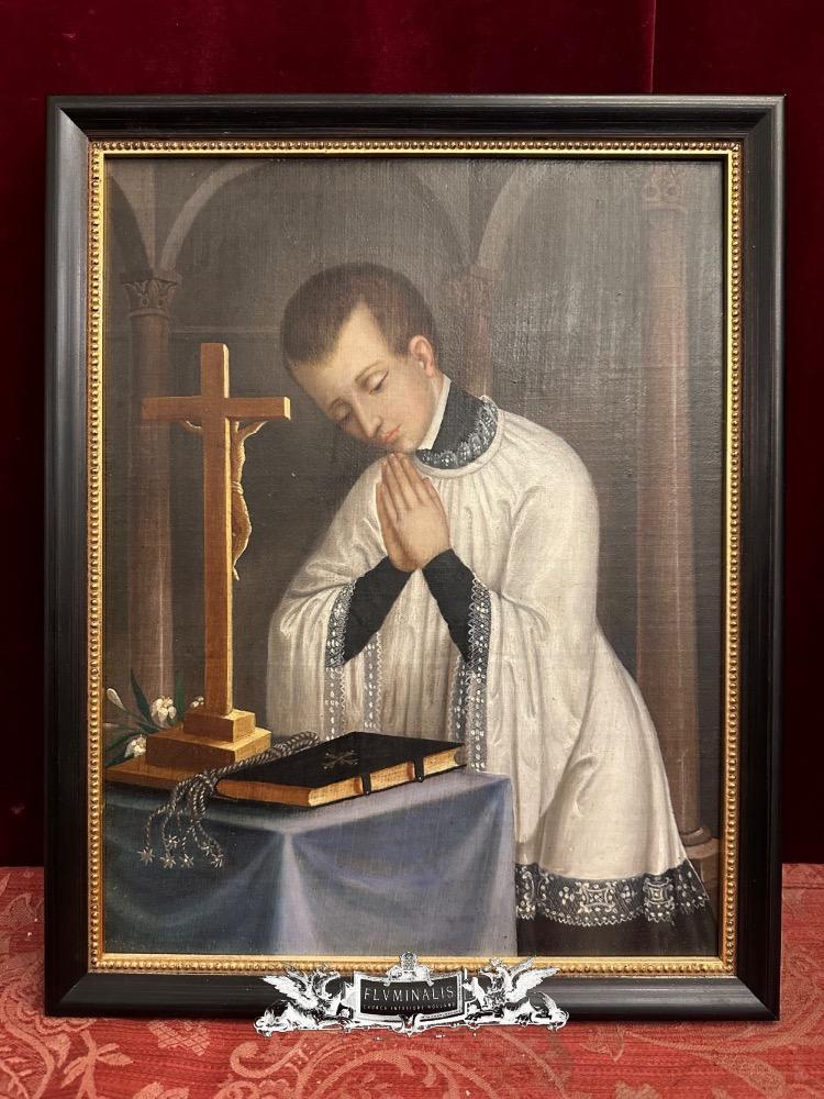 Painting St. Aloysius Of Gonzaga en Wooden Frame / Painted on Canvas, Dutch 19 th century ( Anno 1890 )