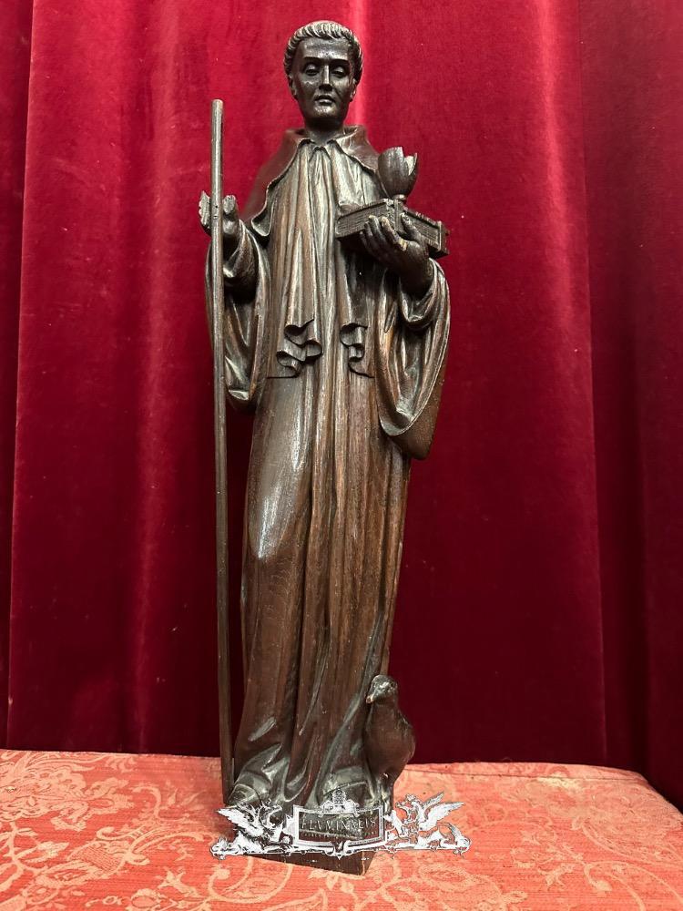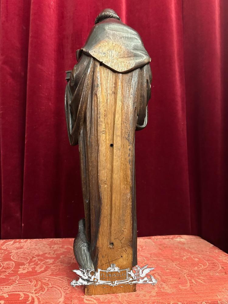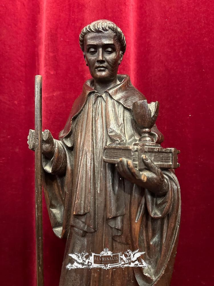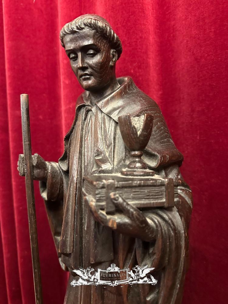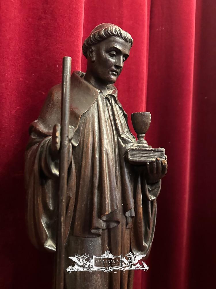 St. Benedict Sculpture style Gothic - Style en Hand - Carved Wood Oak, Belgium 19 th century