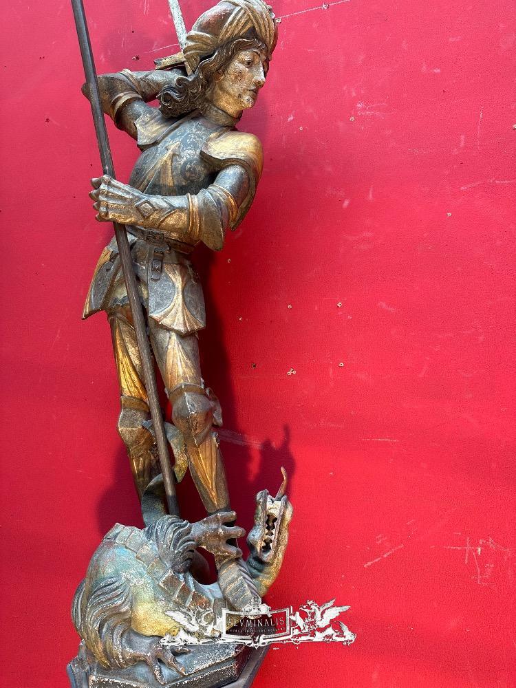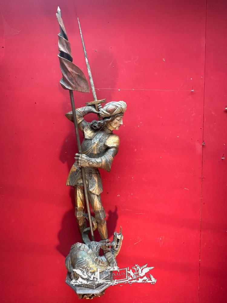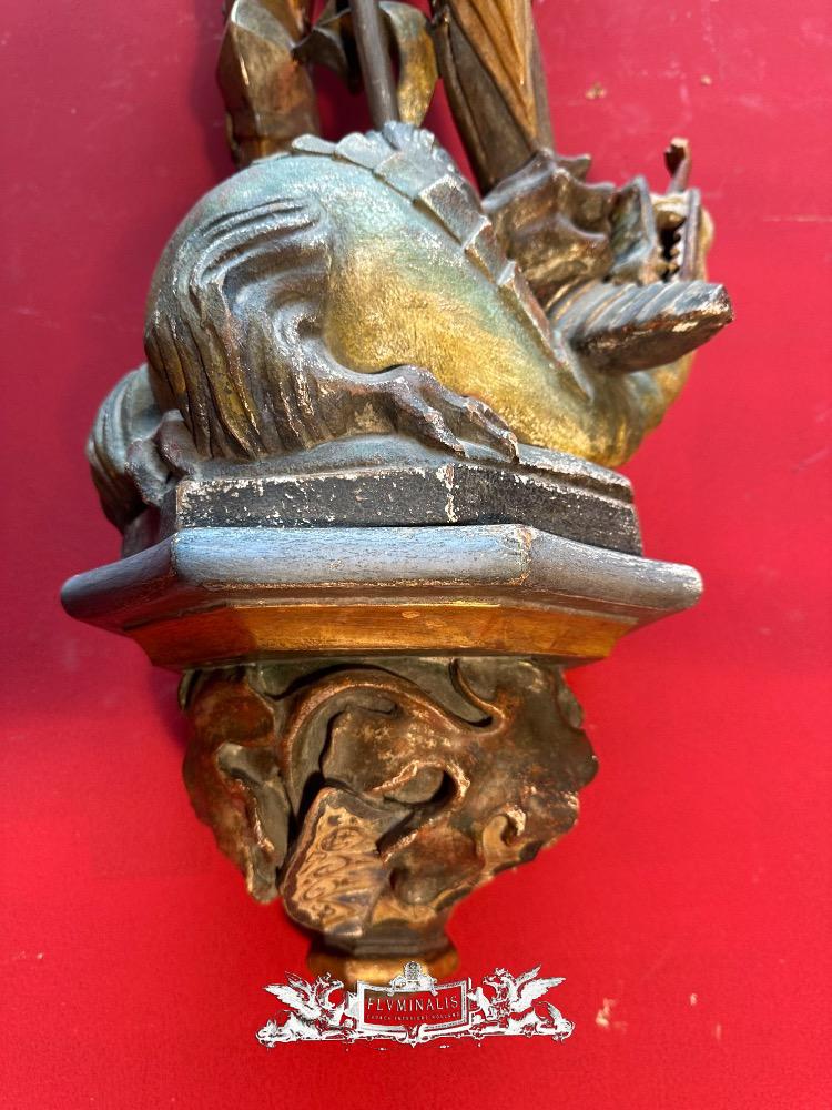 St. George Sculpture en Hand - Carved Wood / Polychrome, Southern Germany 20 th century ( Anno 1930 )