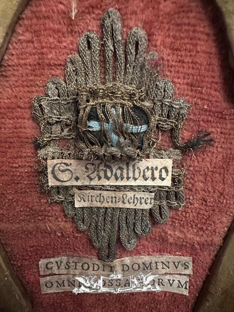 Ex Ossibus Relic Of St. Adalbero Of WüRzburg - Germany. Text : The Lord Quards All Their Bones. en Wood / Fabrics /Brocade & Cedulae / Stones, Germany 18 th century ( Anno 1775 )