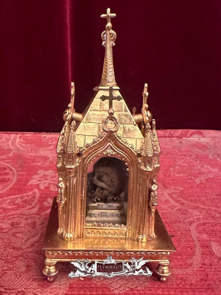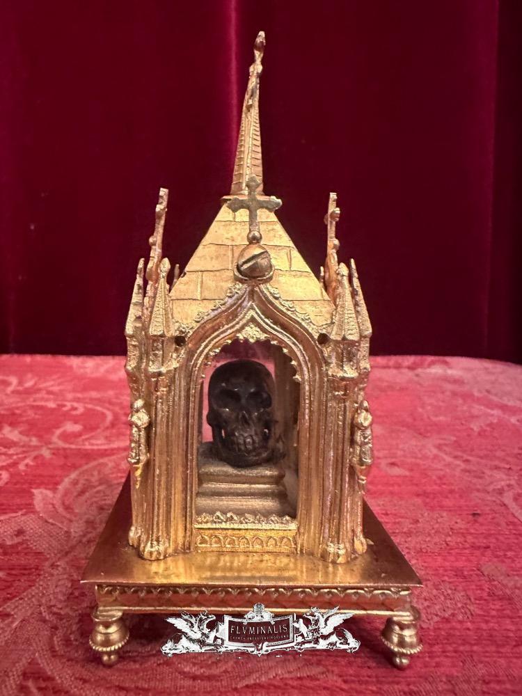 Reliquary Inside A Sculpted Chestnut In The Shape Of A Skull. Ex Carne B. Clemens M. Hofbauer style Gothic - Style en Brass / Bronze / Gilt / Glass, France 19 th century