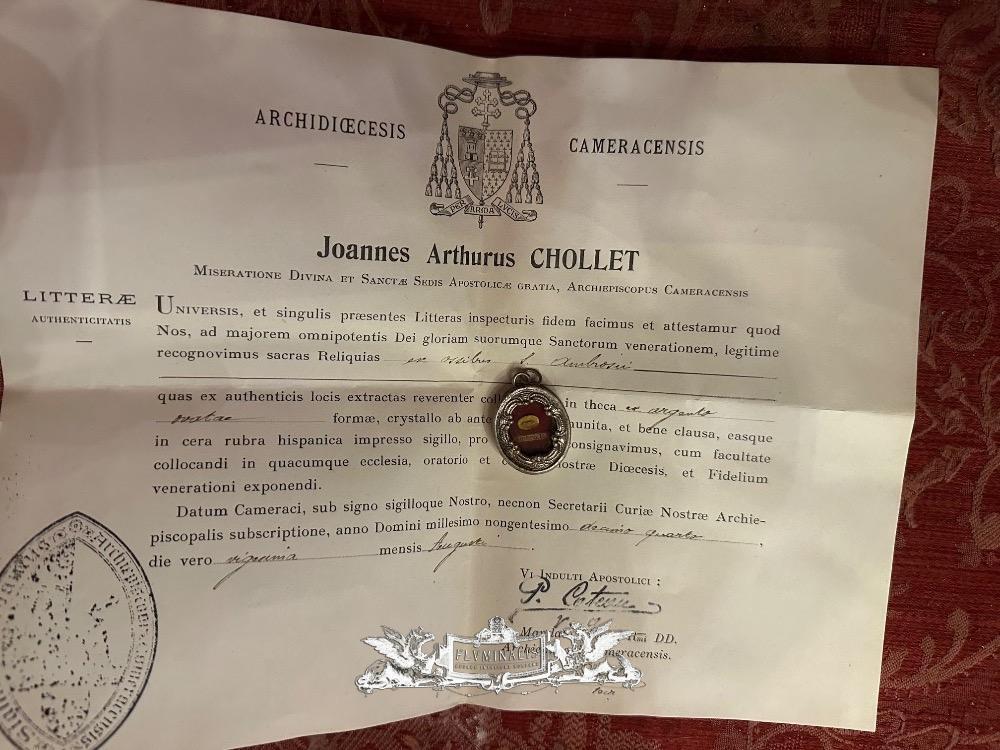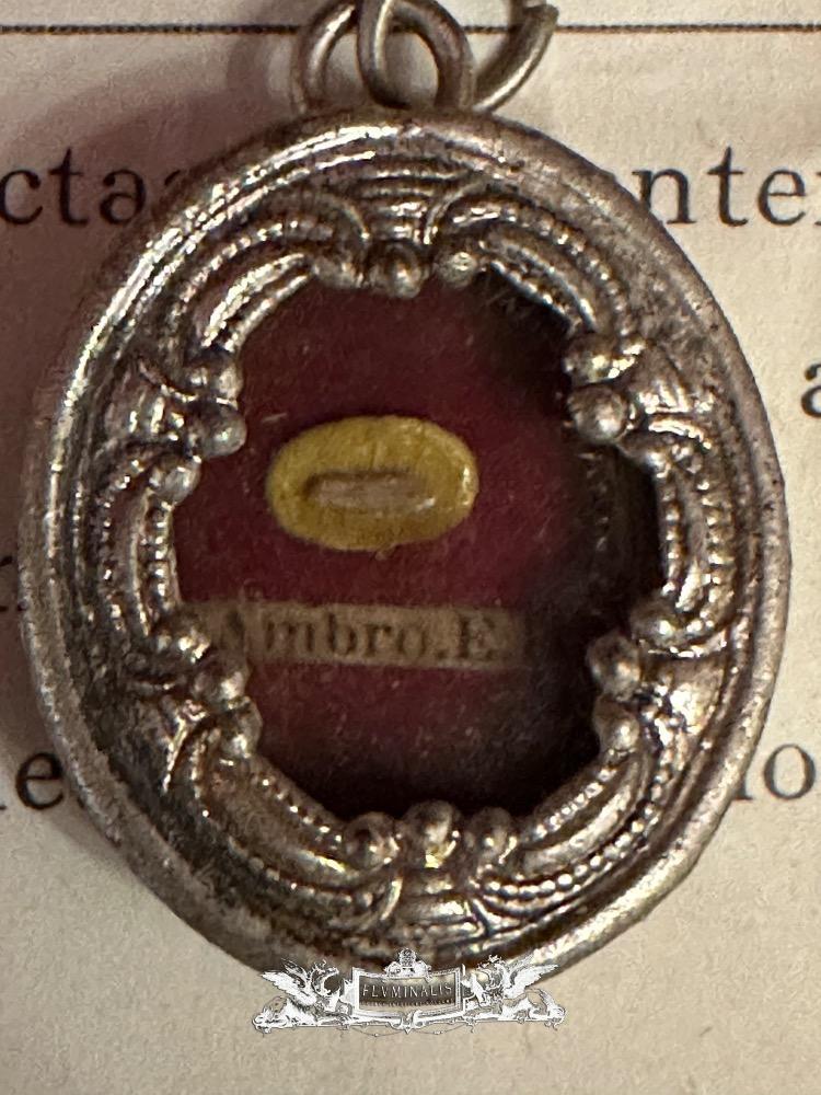 Reliquary - Relic Ex Ossibus St. Ambrosius With Original Document en Silver / Glass / Originally Sealed, France 20 th century ( Anno 1914 )