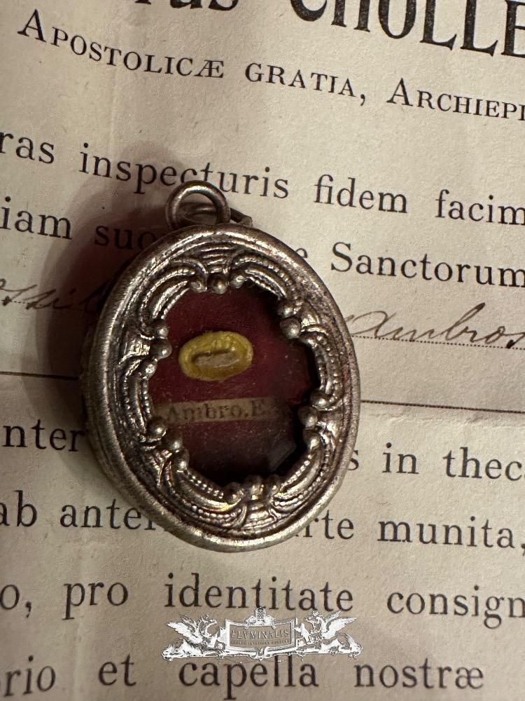 1 Reliquary - Relic Ex Ossibus St. Ambrosius With Original Document
