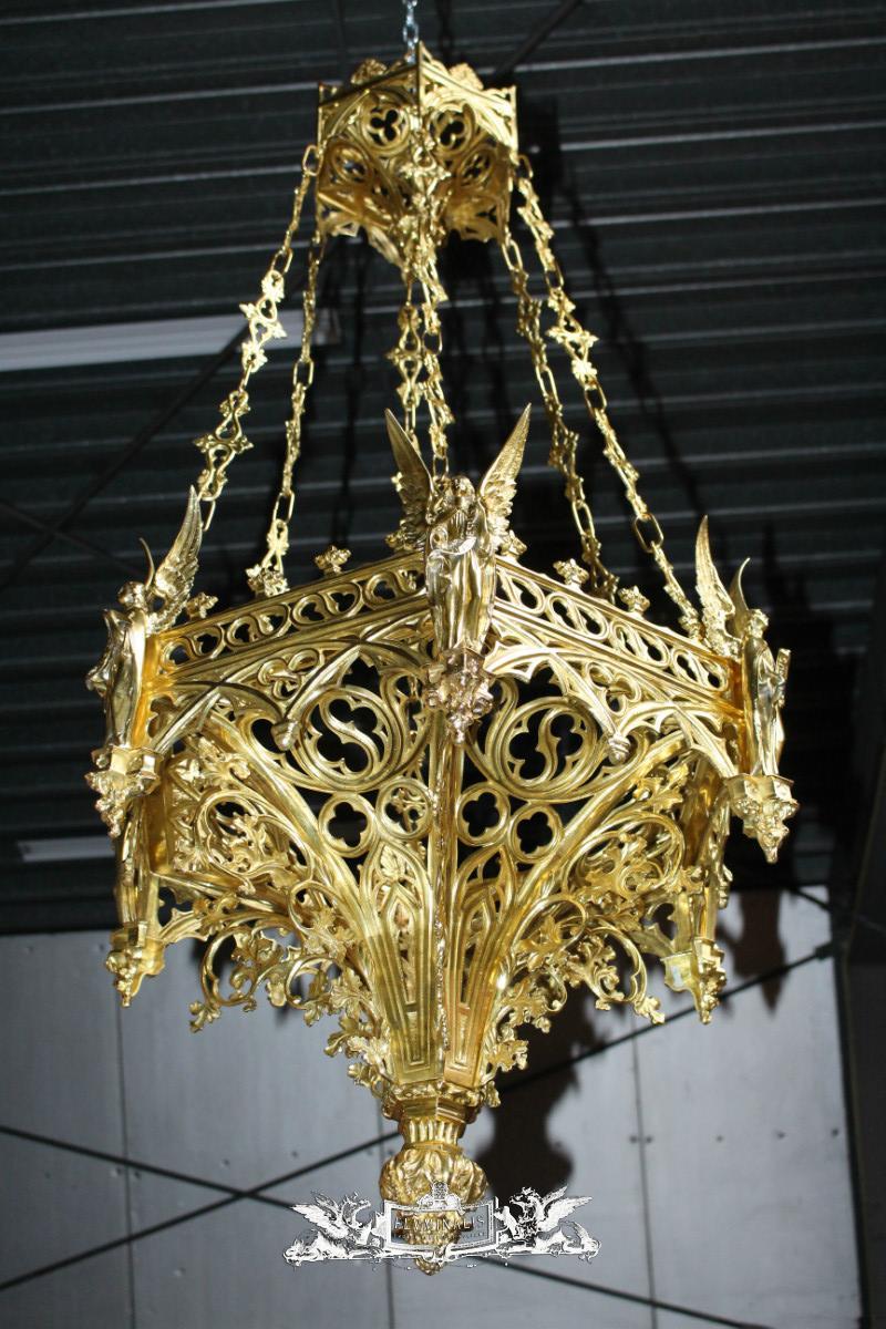 Exceptional Sanctuary Lamp style Gothic - style en Bronze / Polished and Varnished, France 19th century (1870)