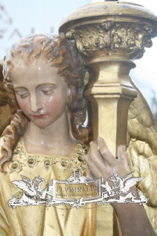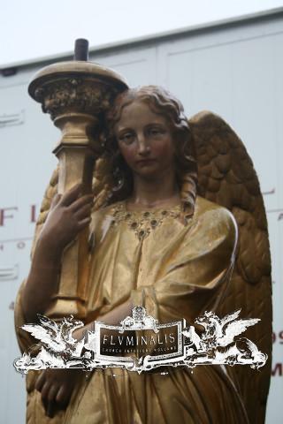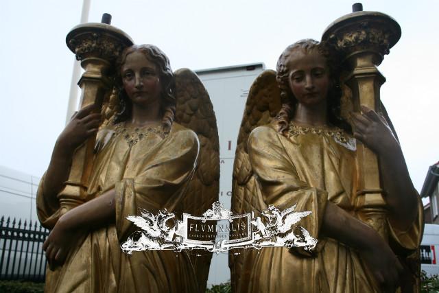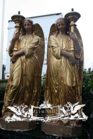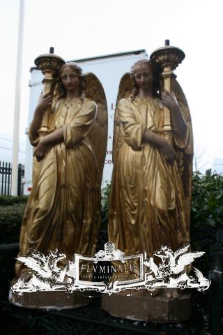 MATCHING PAIR OF TABERNACLE-ANGELS, TERRA-COTTA, 116 CM / 46” , MANUFACTURED BY REGONY-PARIS ANNO ABOUT 1865.