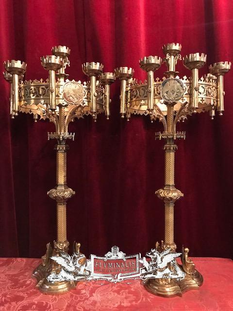 Candle Holders style Gothic - style en Full Bronze / Polished , France 19th century ( anno 1875 )