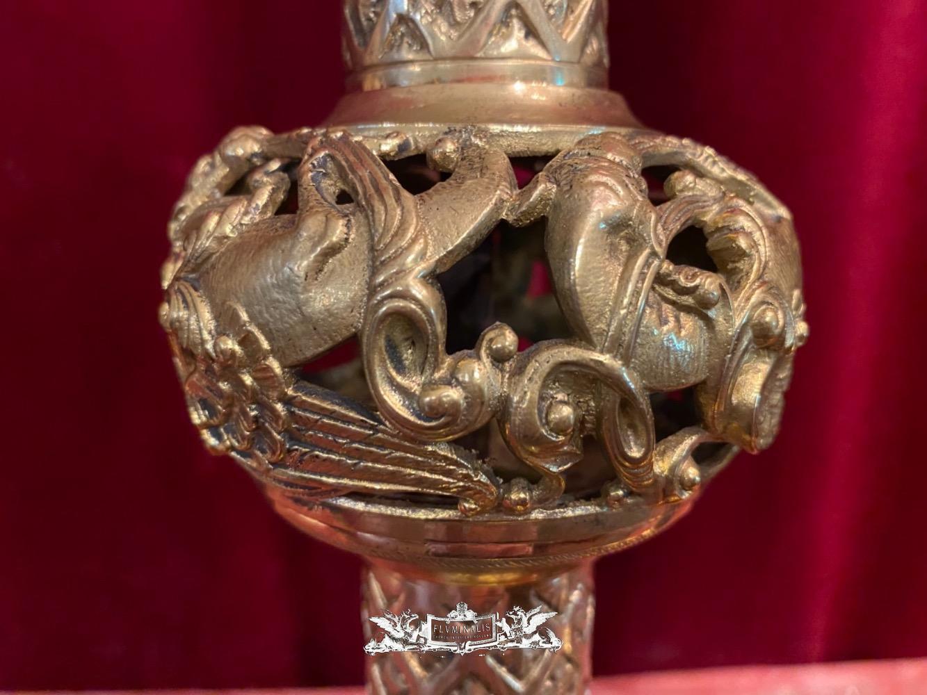 Candle Holders style Romanesque - Style en Bronze Gilt, France 19 th century ( Anno 1890 )