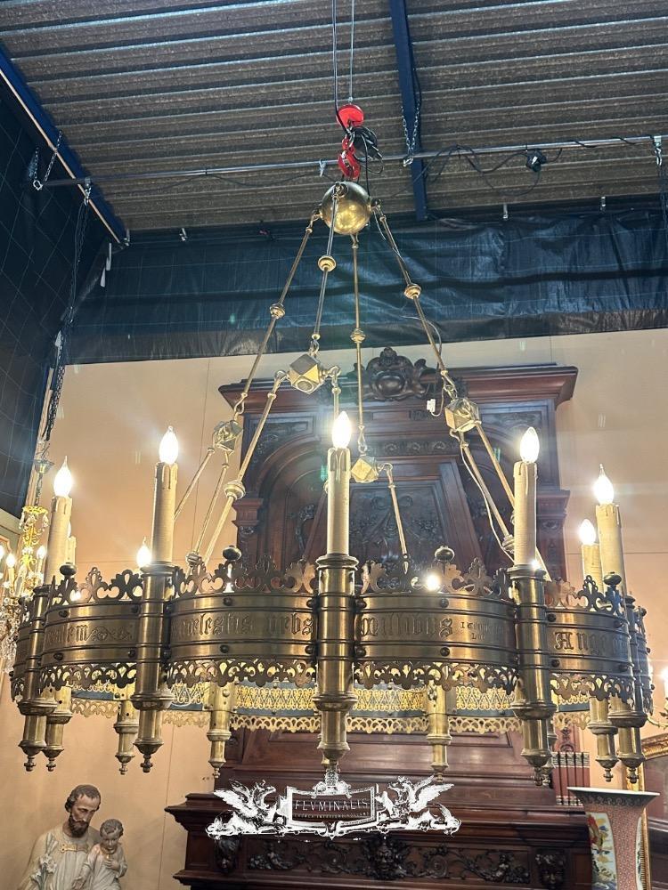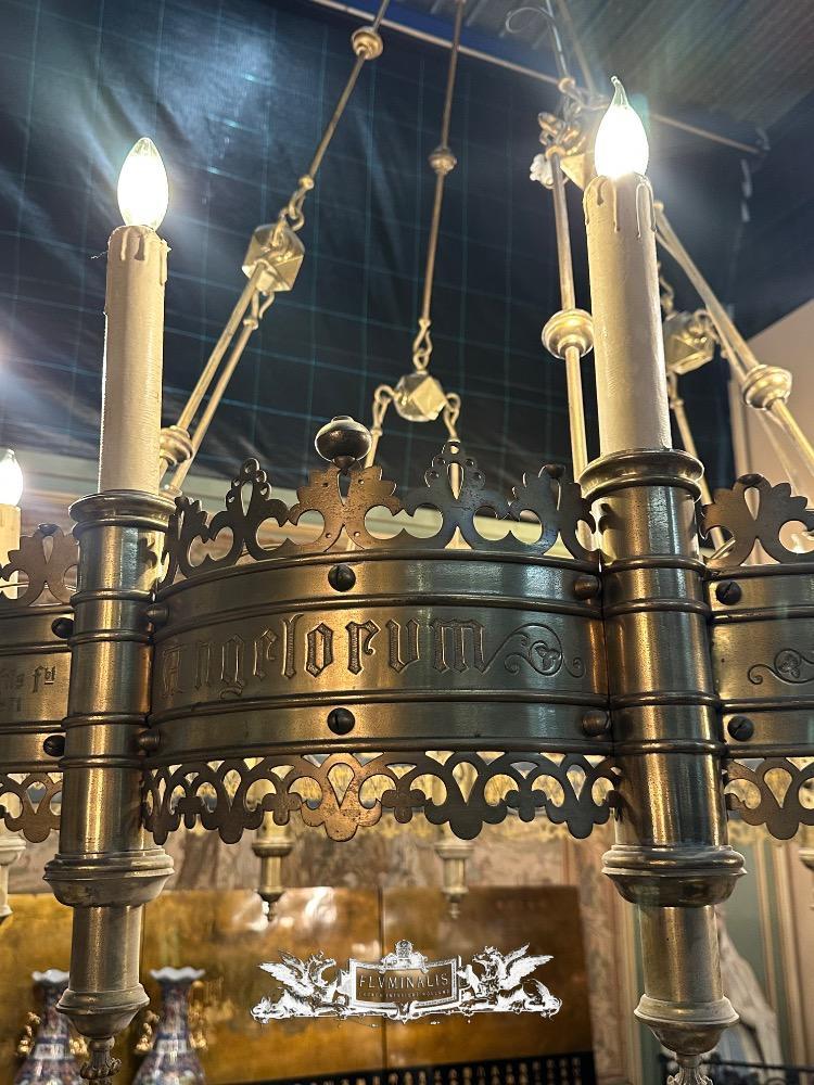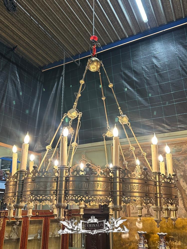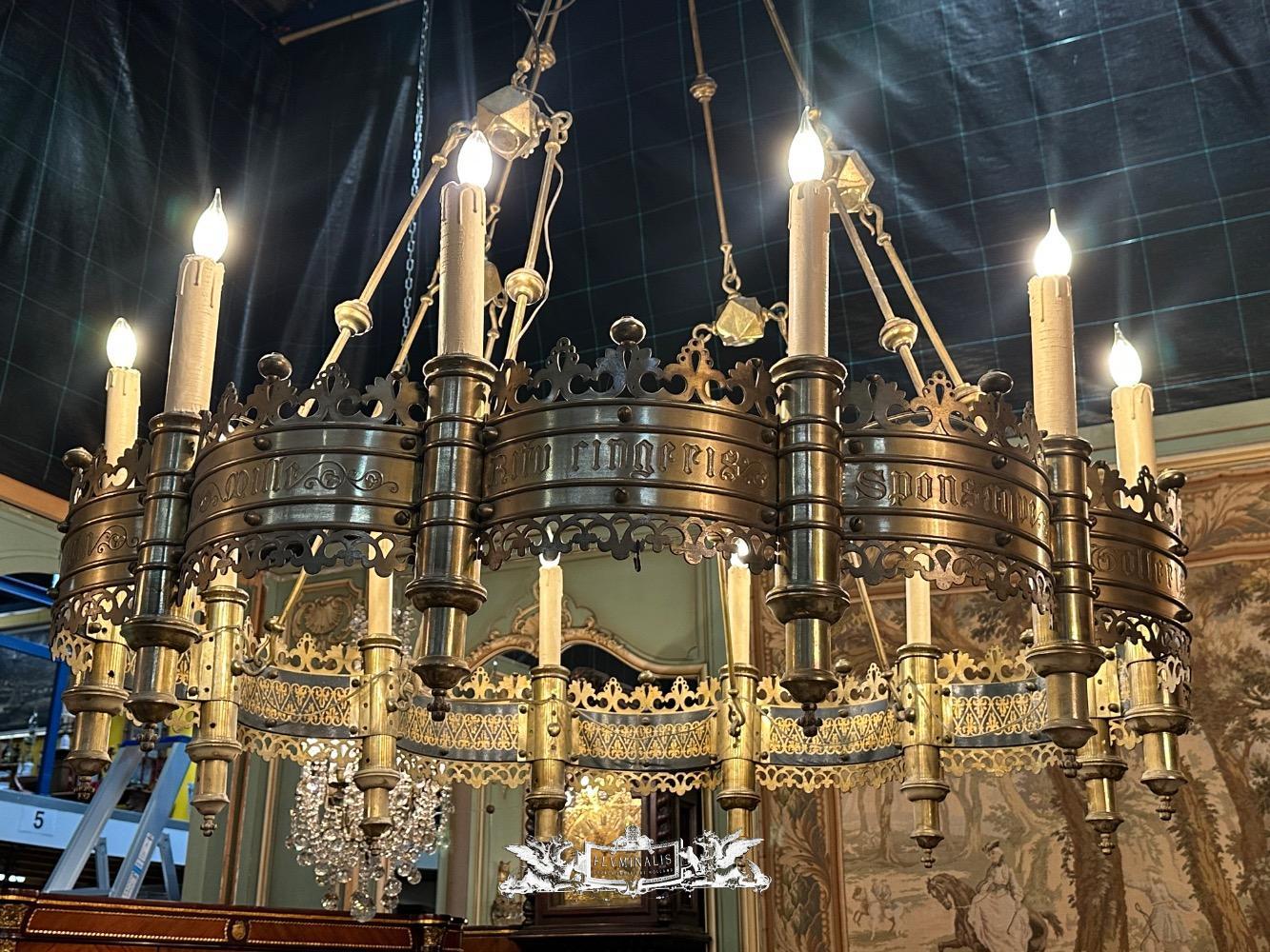 Exceptional Chandelier style Gothic - Style en Brass / Bronze , Belgium 19 th century ( Anno 1865 )