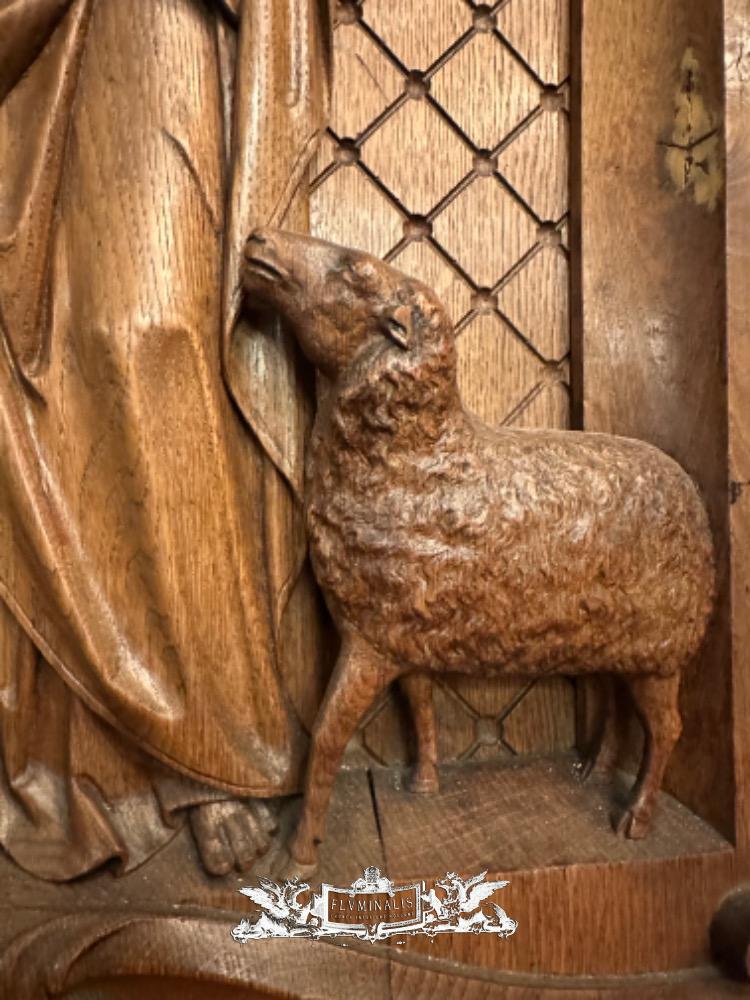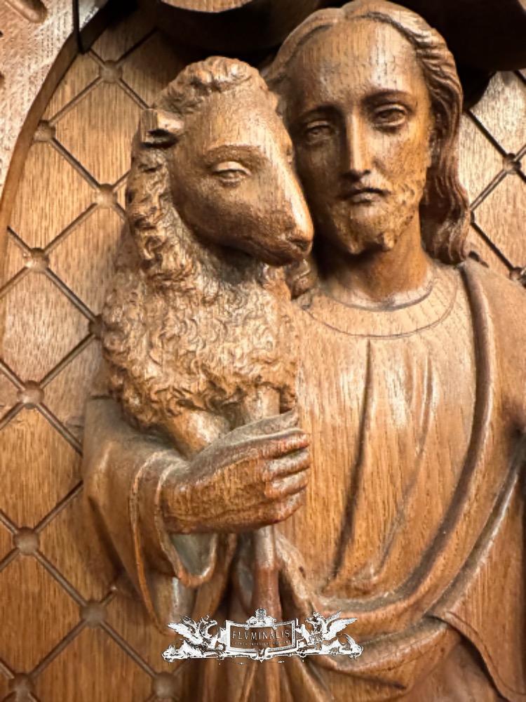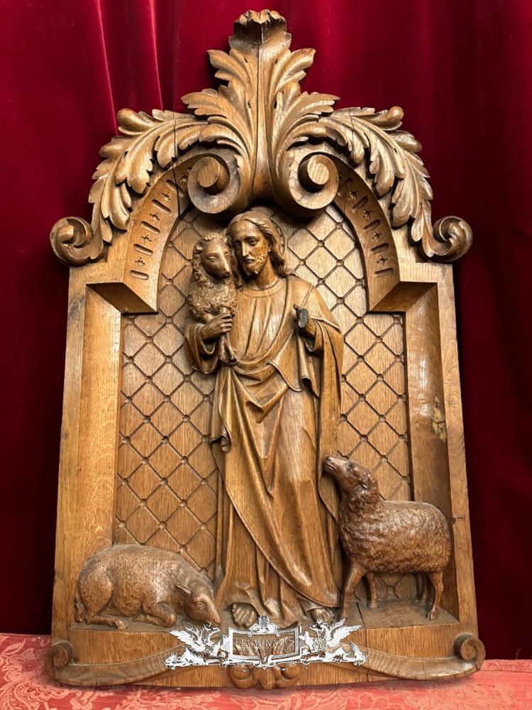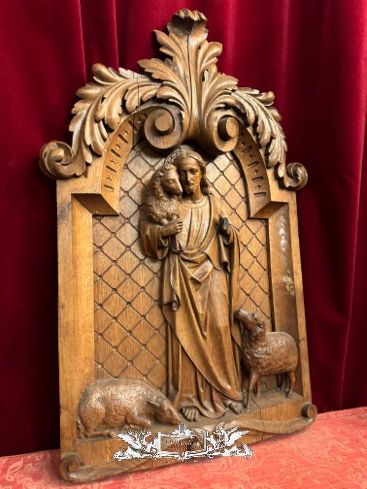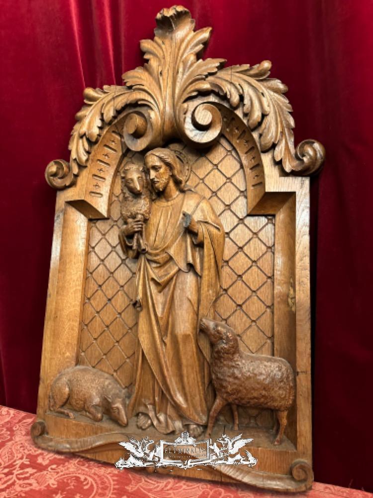 Relief Jesus The Good Shepherd. style Baroque - Style en Hand - Carved Wood Oak, Breda Netherlands 19 th century ( Anno 1845 )