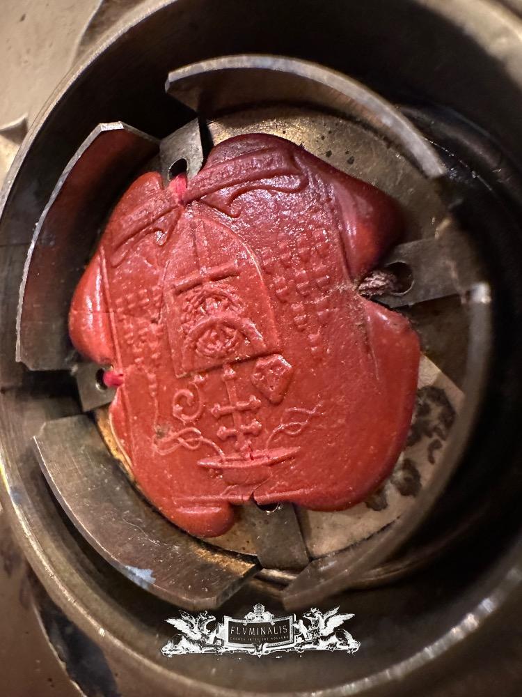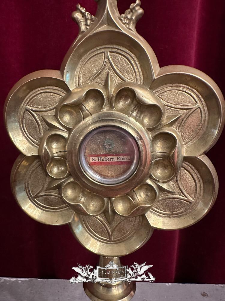 Reliquary - Relic Ex Ossibus St. Hubertus style Gothic - Style en Brass / Bronze / Glass / Originally Sealed , Belgium 19 th century