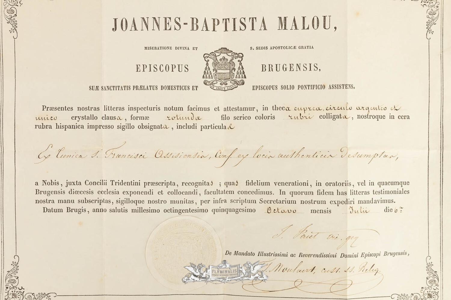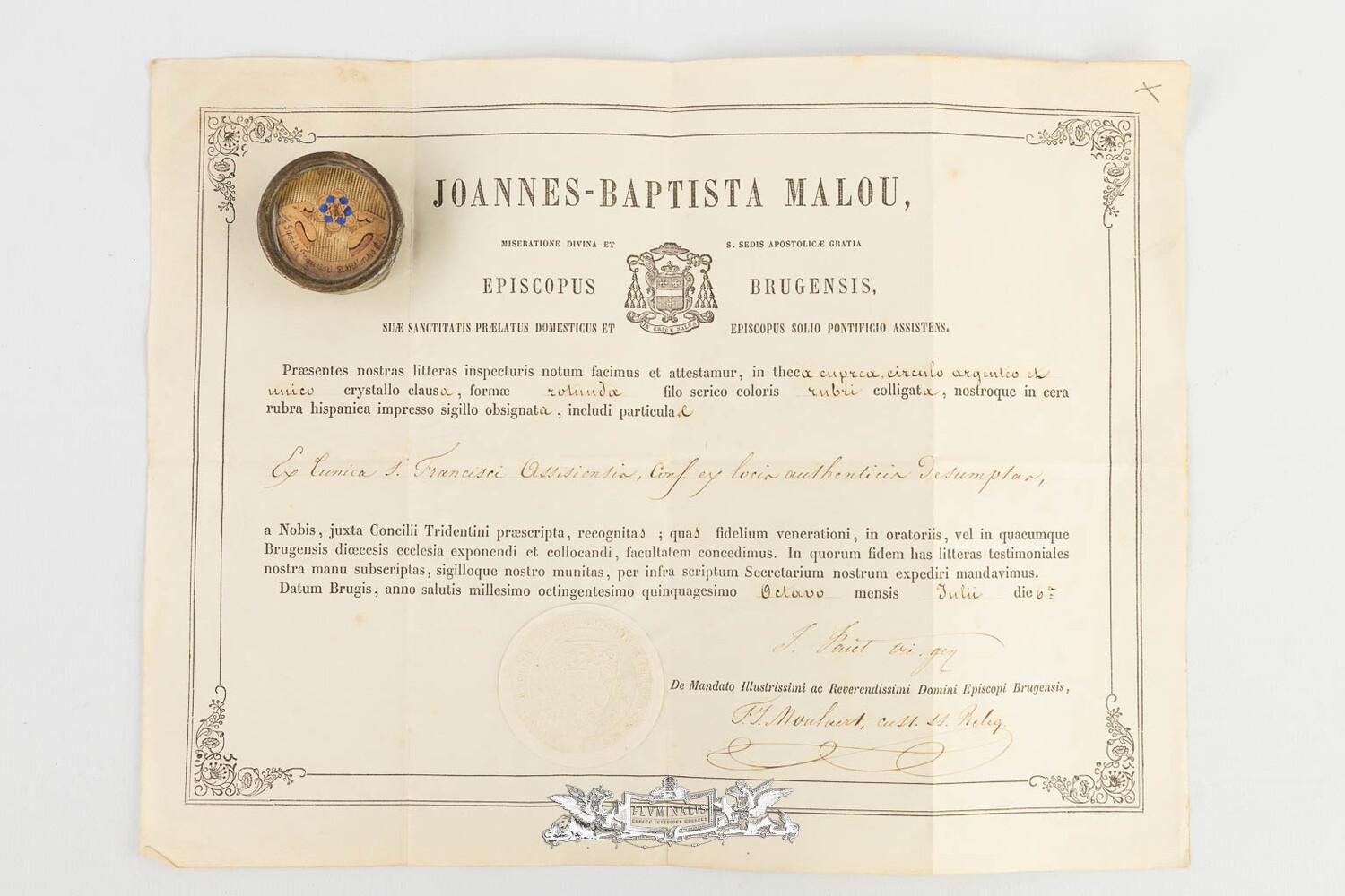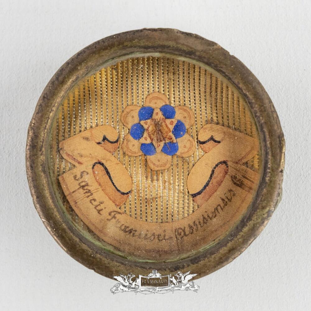Reliquary - Relic Ex Tunica Sancti Francisci Assisiensus With Original Docment en Brass / Glass / Wax Seal, Belgium 19 th century