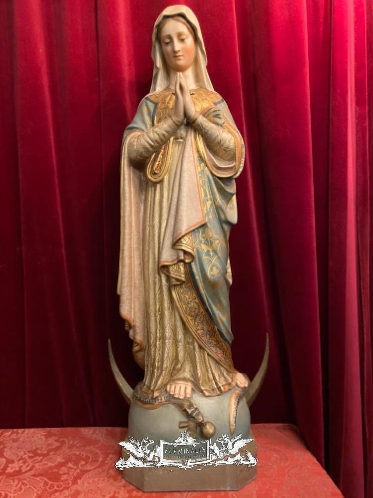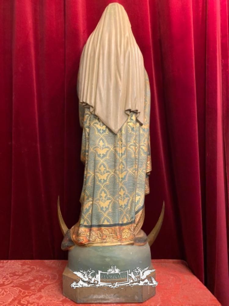 St. Mary Statue style Gothic - style en Plaster polychrome, Belgium 19 th century
