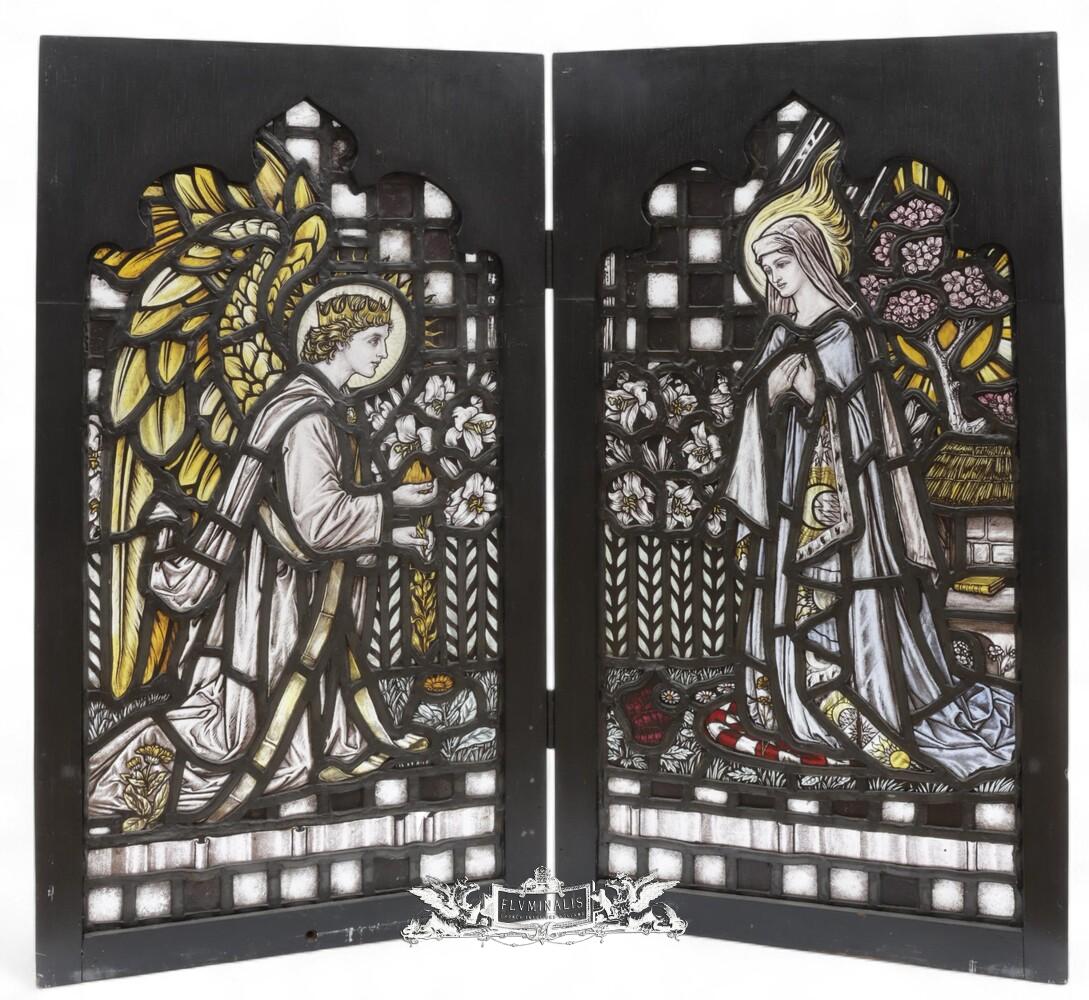 Pair Stained Glass Windows Annunciation
