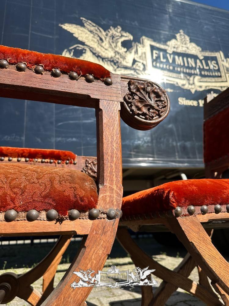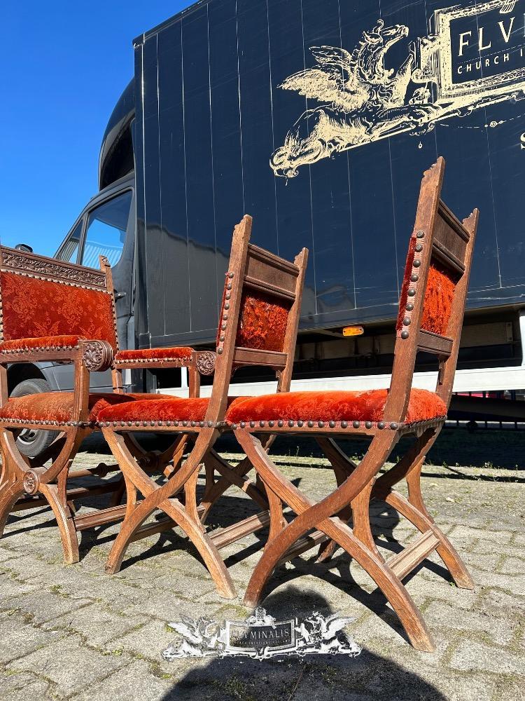 Chairs style Gothic - Style en Oak Wood / Fabrics, Belgium 19 th century