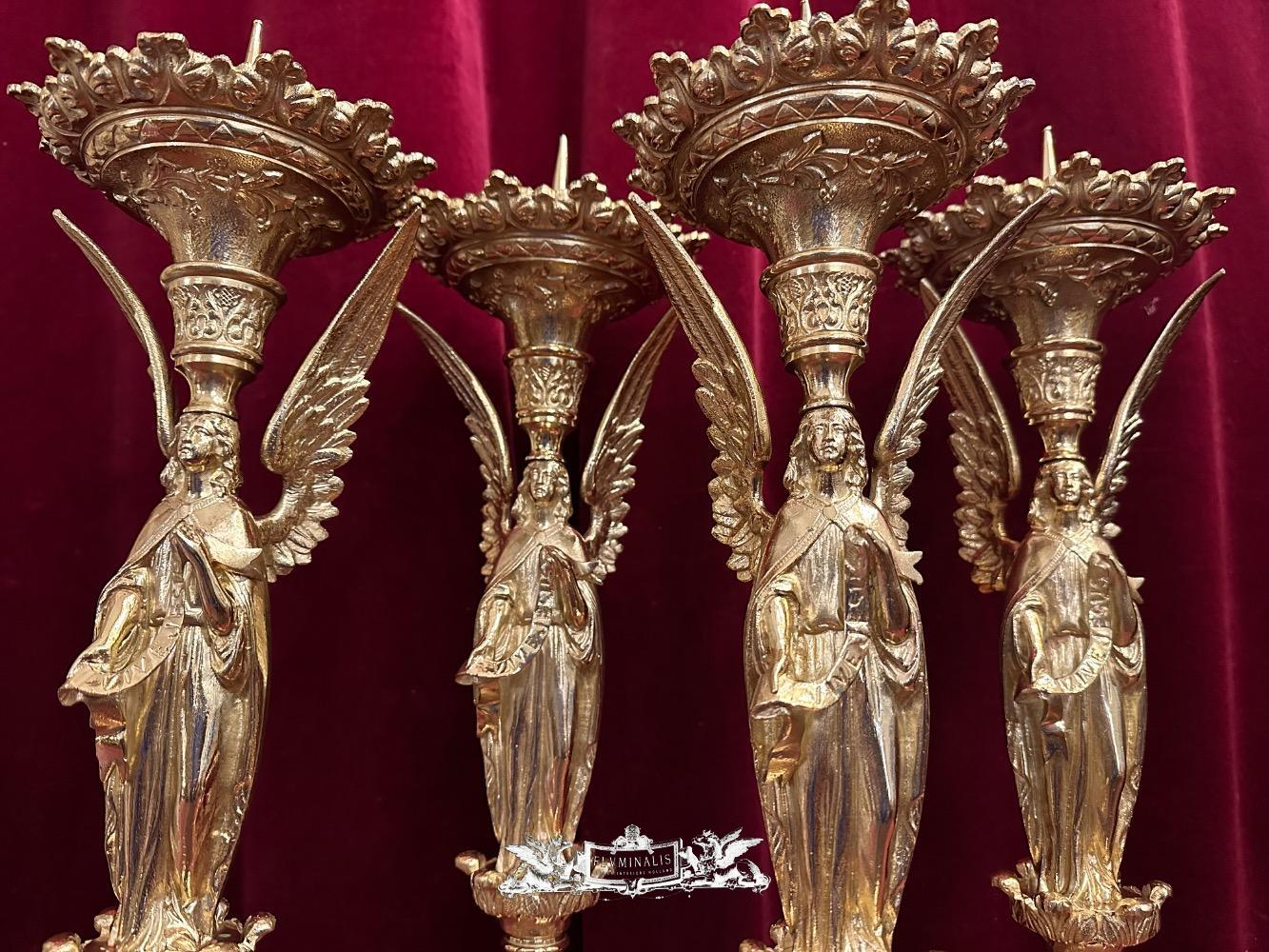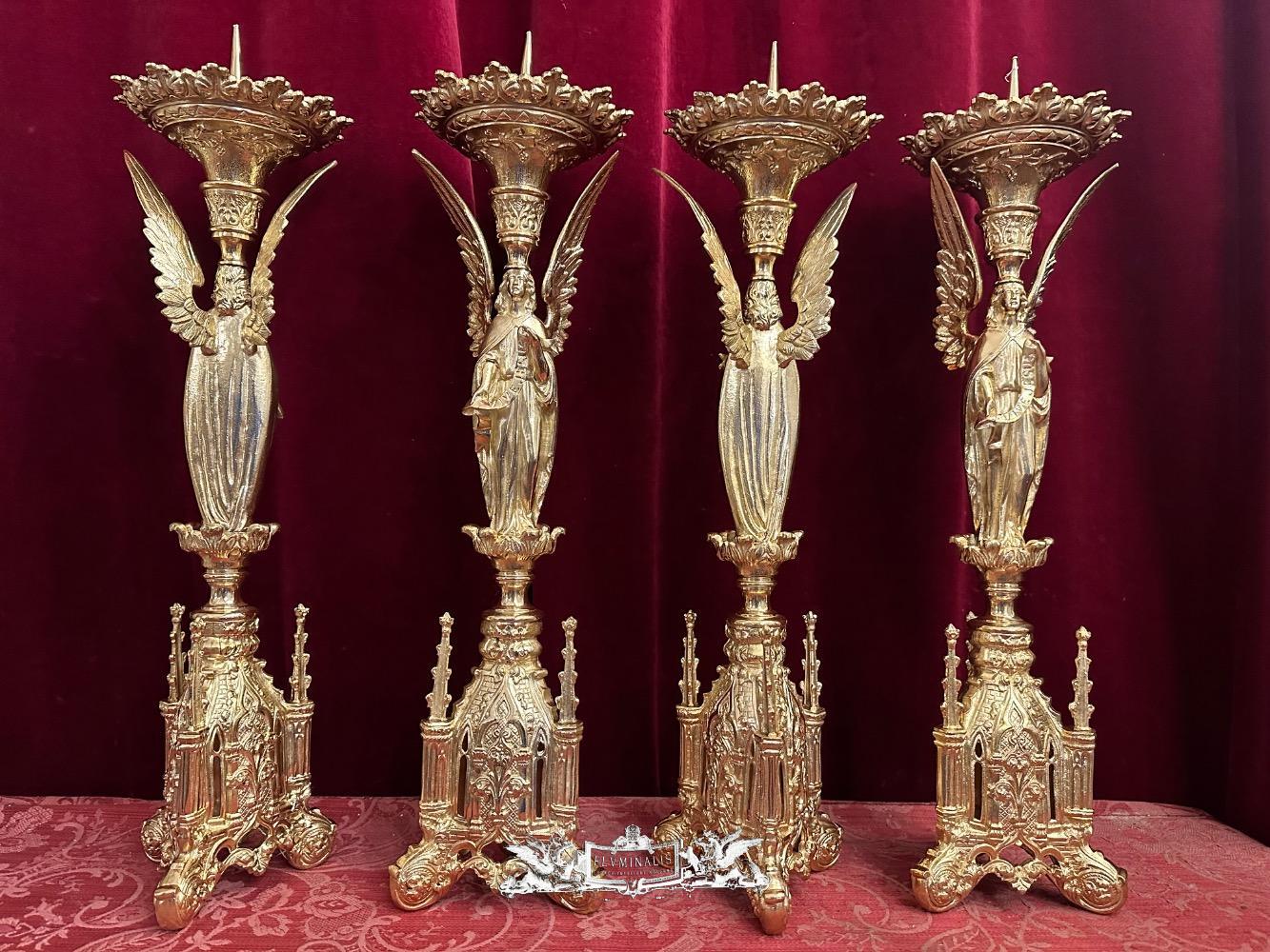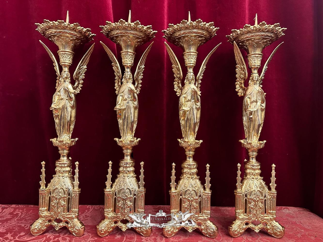 Matching Candle Sticks Height Without Pin. style Gothic - Style en Bronze / Polished and Varnished, France 19 th century ( Anno 1865 )