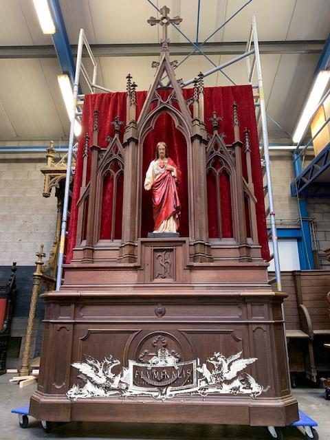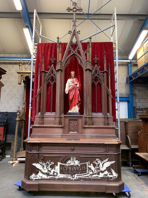 Exceptional Altar style Gothic - style en Oak wood, Belgium 19th century ( anno 1875 )