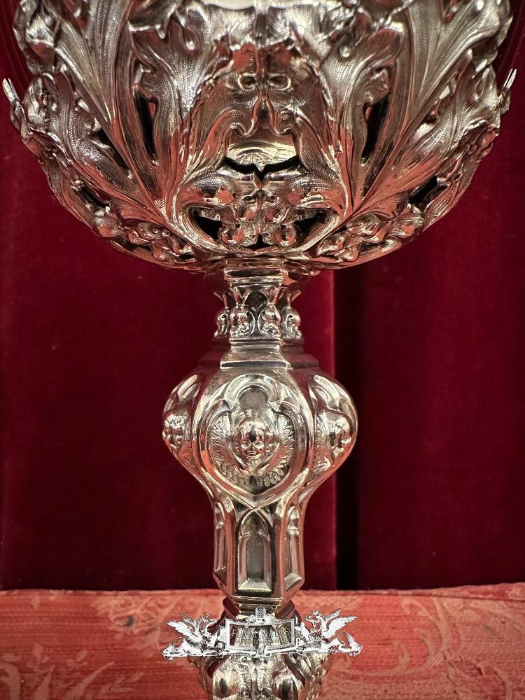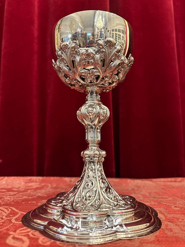 Chalice style Gothic - Style en Full - Silver ( 800 ) / Silver Marks Present / Polished & Varnished., Belgium 19 th century ( 1882 )