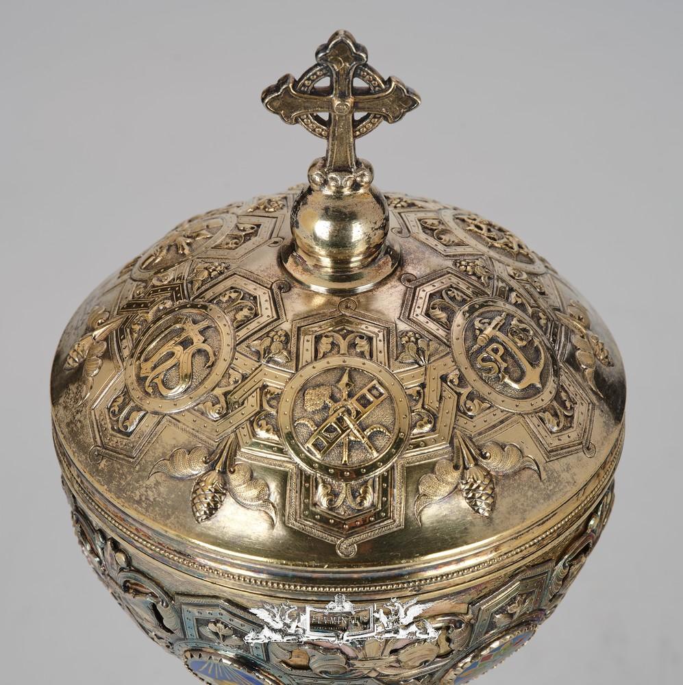 Ciborium style Romanesque - Style en Silver / Enamel, Paris France 19 th century