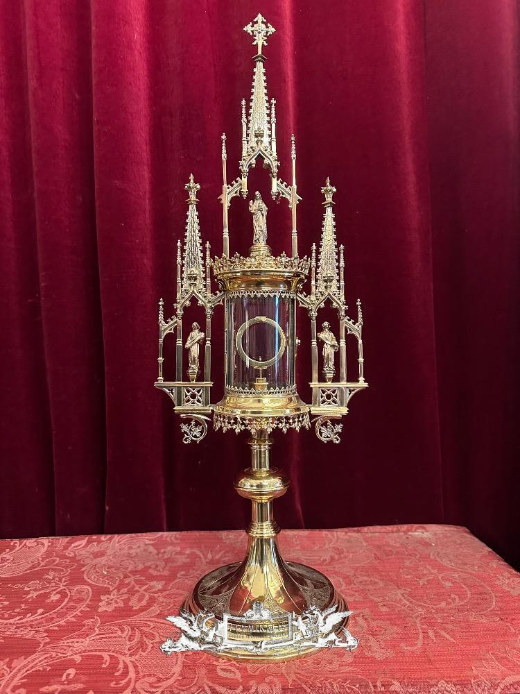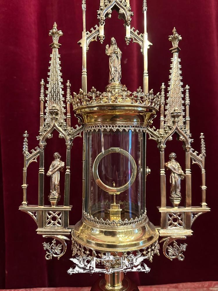 Cillinder Monstrance style Gothic - Style en Brass / Bronze / Gilt / Glass, Belgium 19 th century ( Anno 1875 )