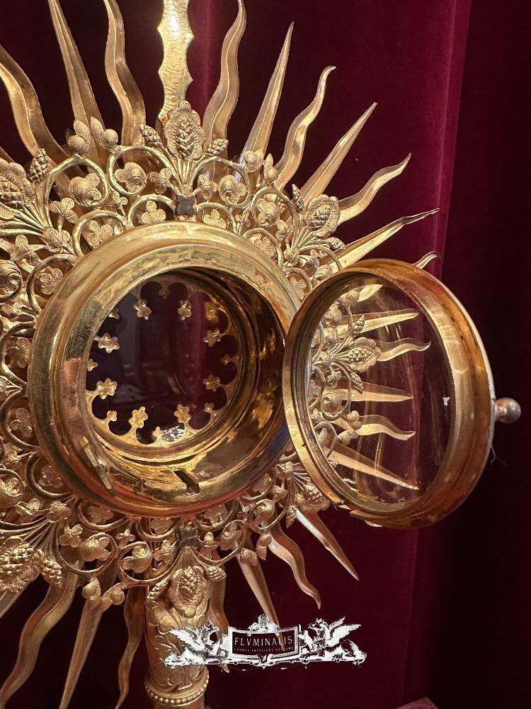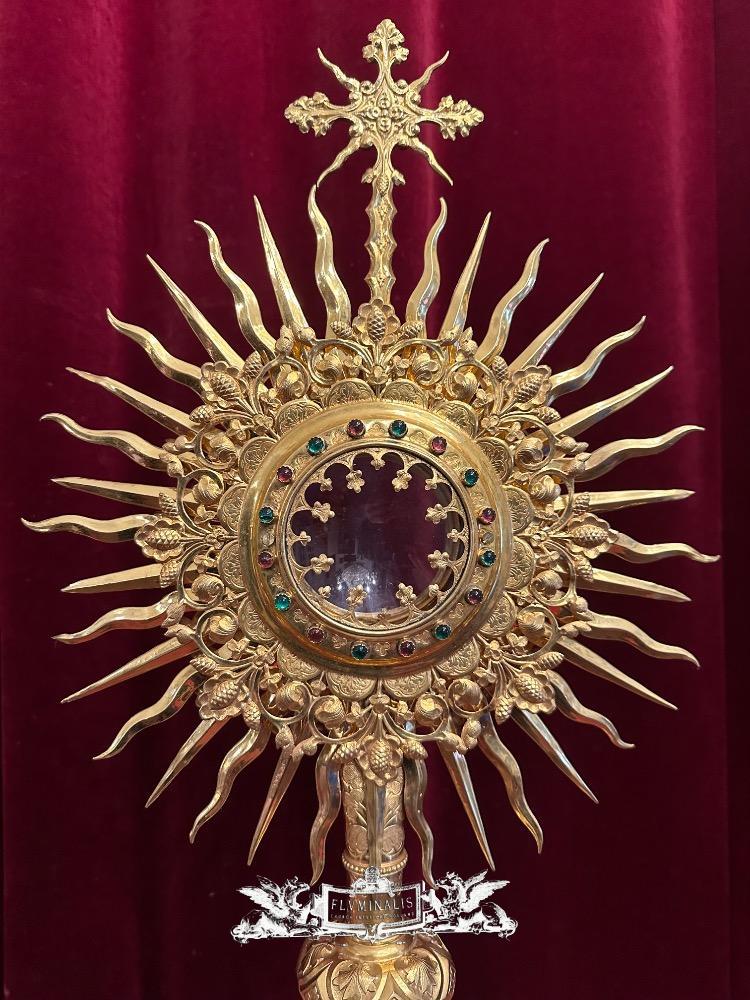 Monstrance style Gothic - Style en Brass / Gilt / Glass / Stones, Belgium 19 th century ( Anno 1885 )