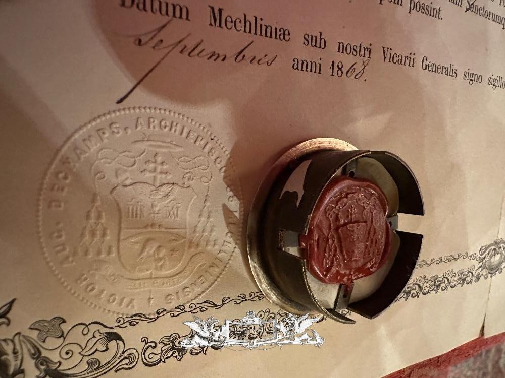 Reliquary - Relic Ex Sepulchre St. John Evangelist With Original Document style Baroque - Style en Woood / Brass / Glass / Originally Sealed, 18th / Approved 1886 / 19th Century