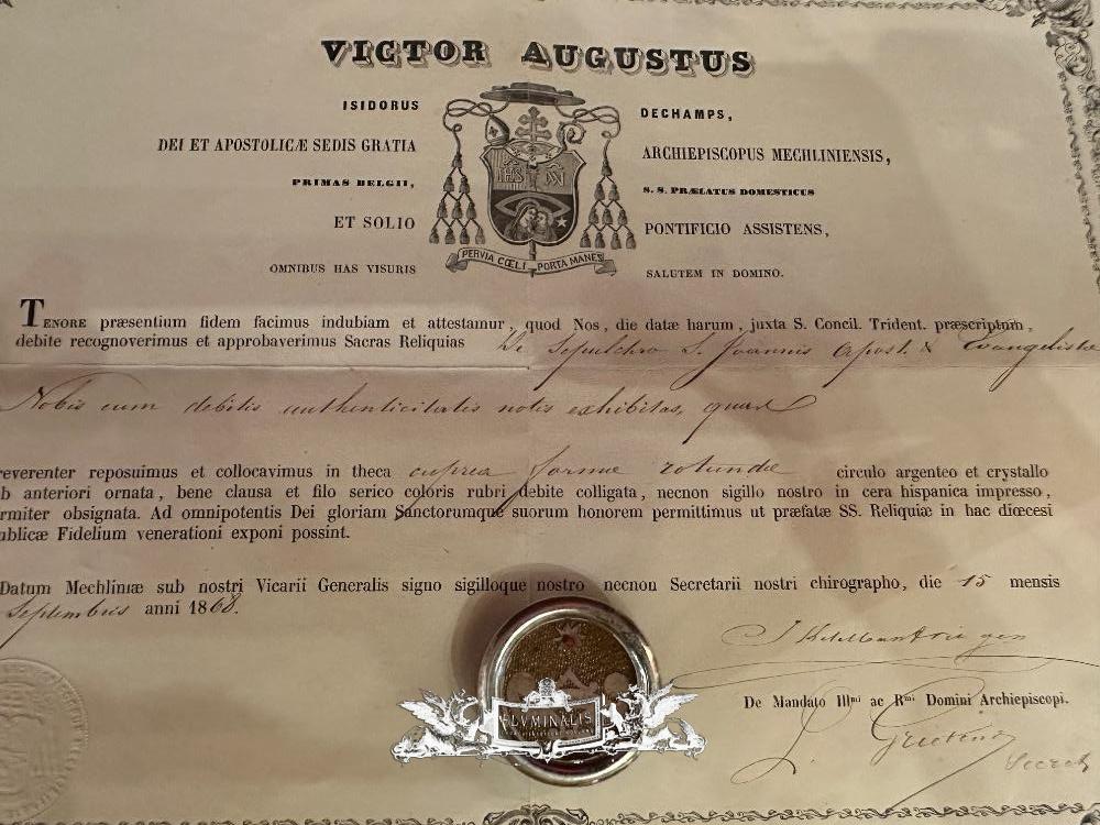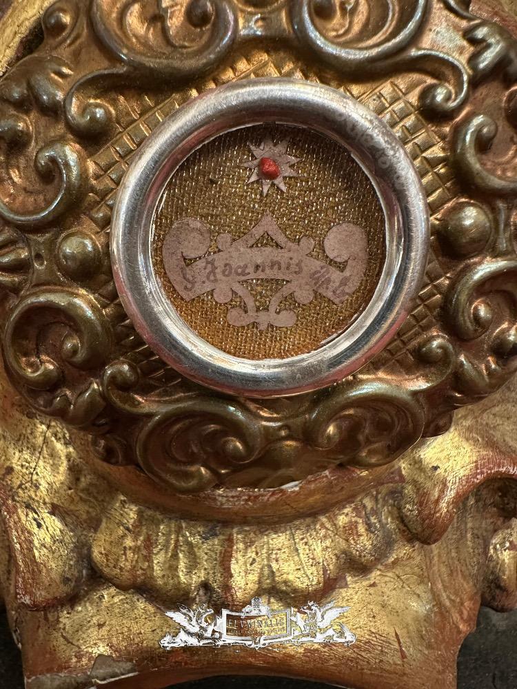 1 Baroque - Style Reliquary - Relic Ex Sepulchre St. John Evangelist With Original Document