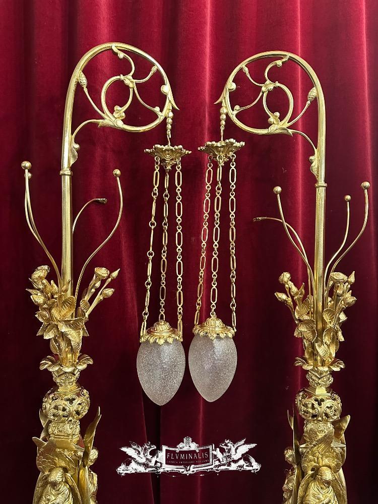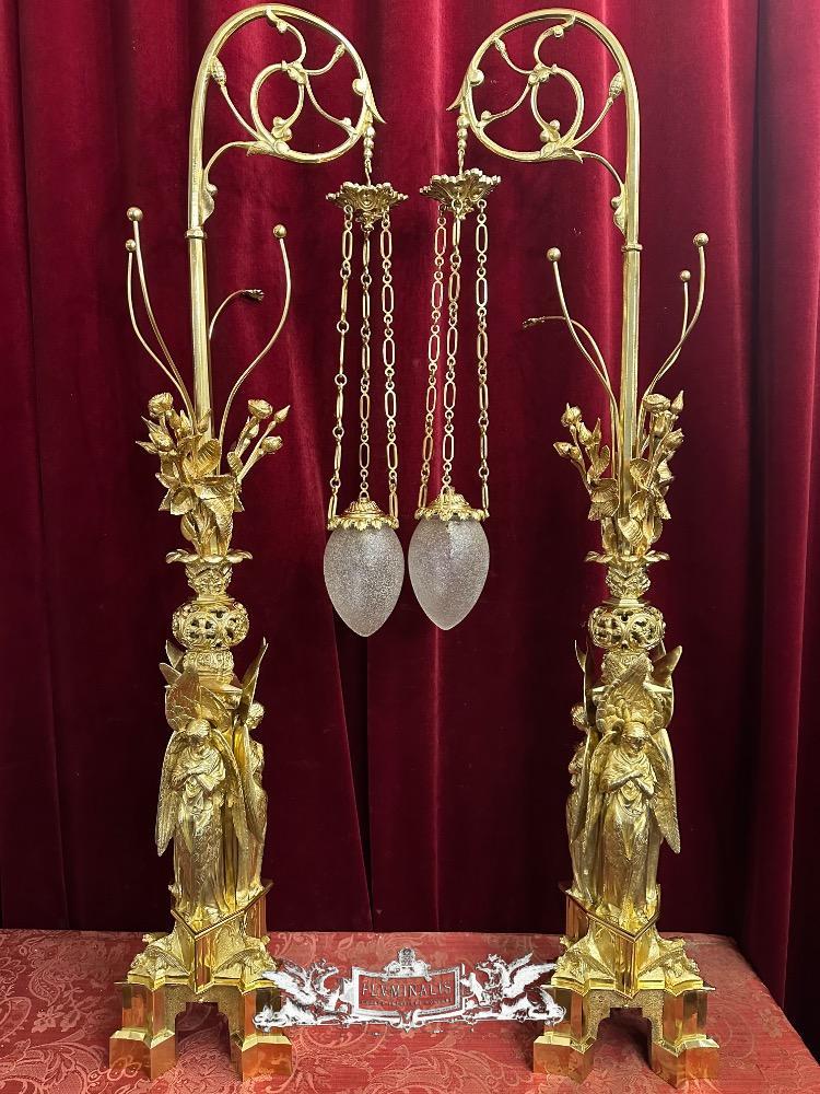 Exceptional Standing Sanctuary Lamps style Gothic - Style en Bronze / Polished and Varnished, France 19 th century ( Anno 1865 )