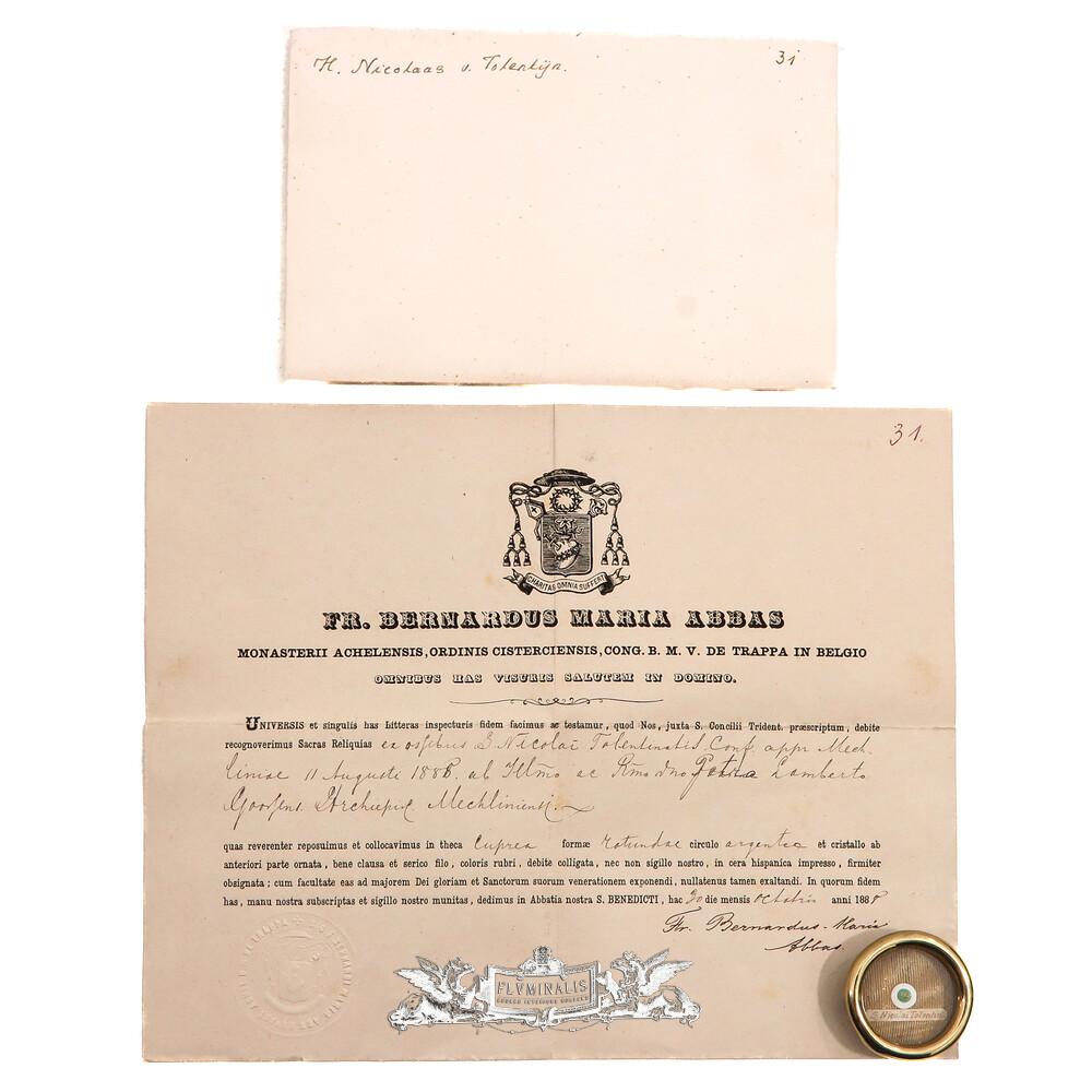 Reliquary - Relic St. Nicholas With Original Document en Brass / Glass / Wax Seal,