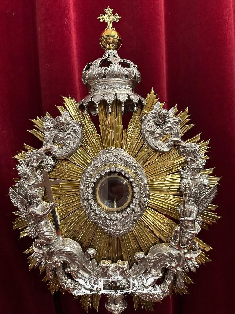 Monstrance style Baroque - Style en Full - Silver / Stones / Diamonds / Glass / Polished & Varnished, Belgium 18 th century