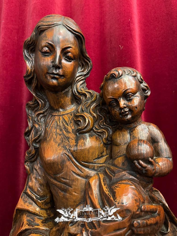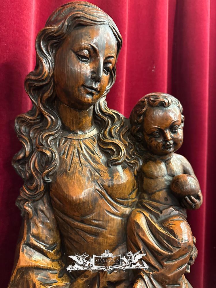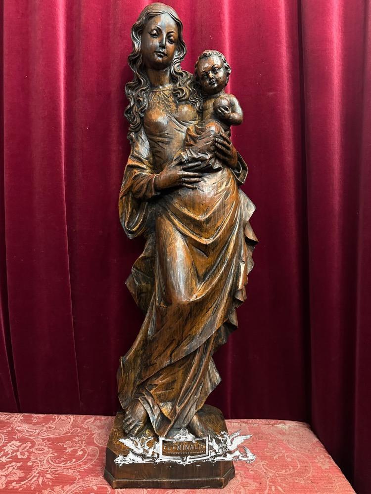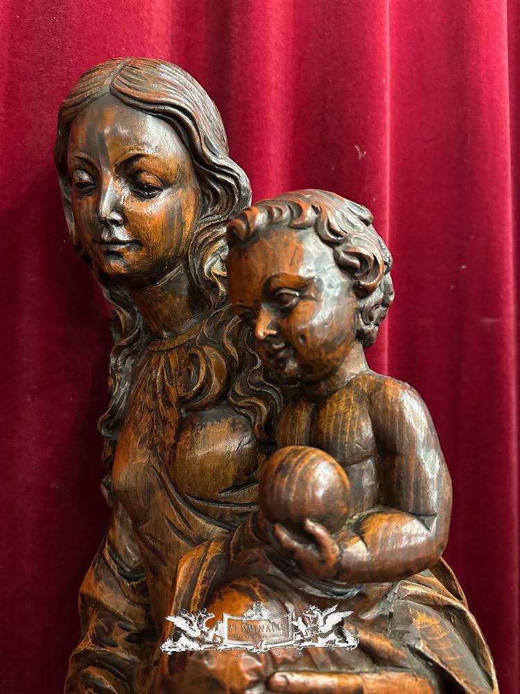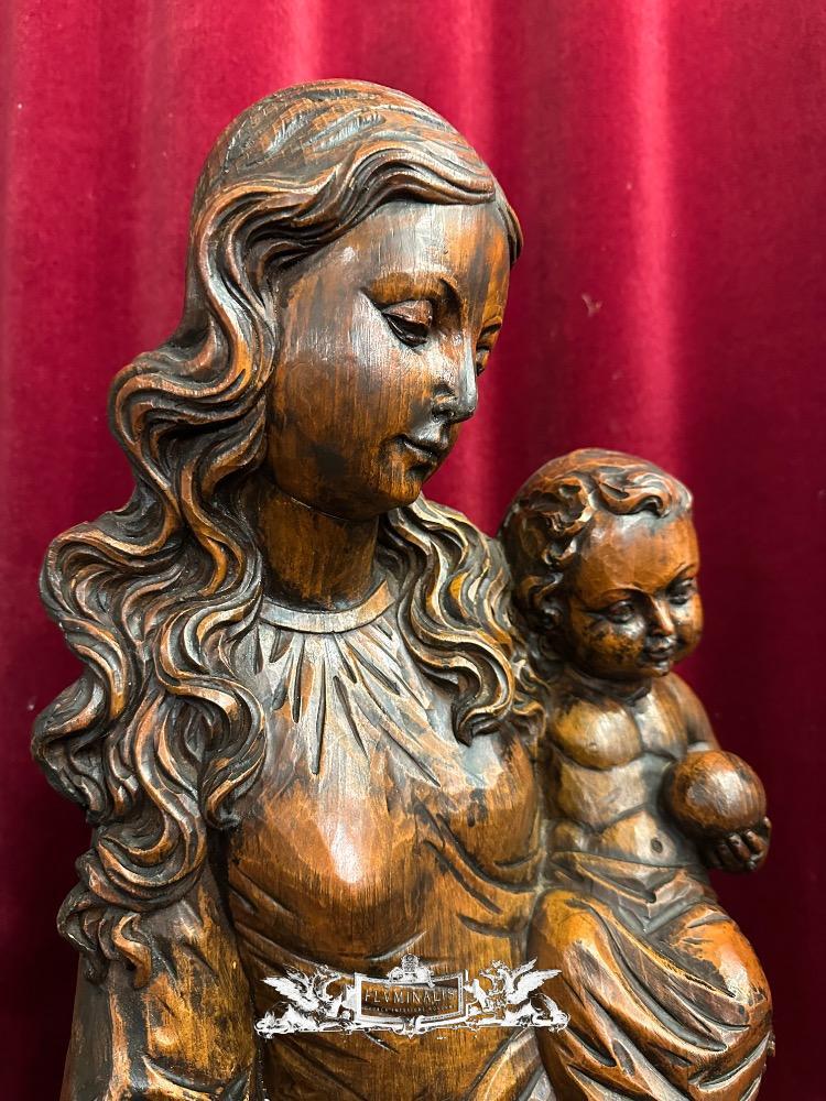 St. Mary With Child Sculpture. en Hand - Carved Wood , 20 th century